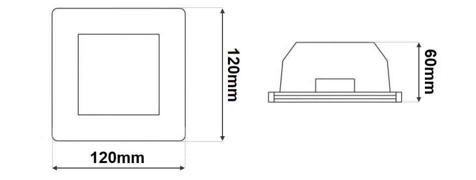 Dimensioni ottimali – Misura 120x120x60mm con foro di incasso 125x125mm, per un’installazione semplice e precisa.