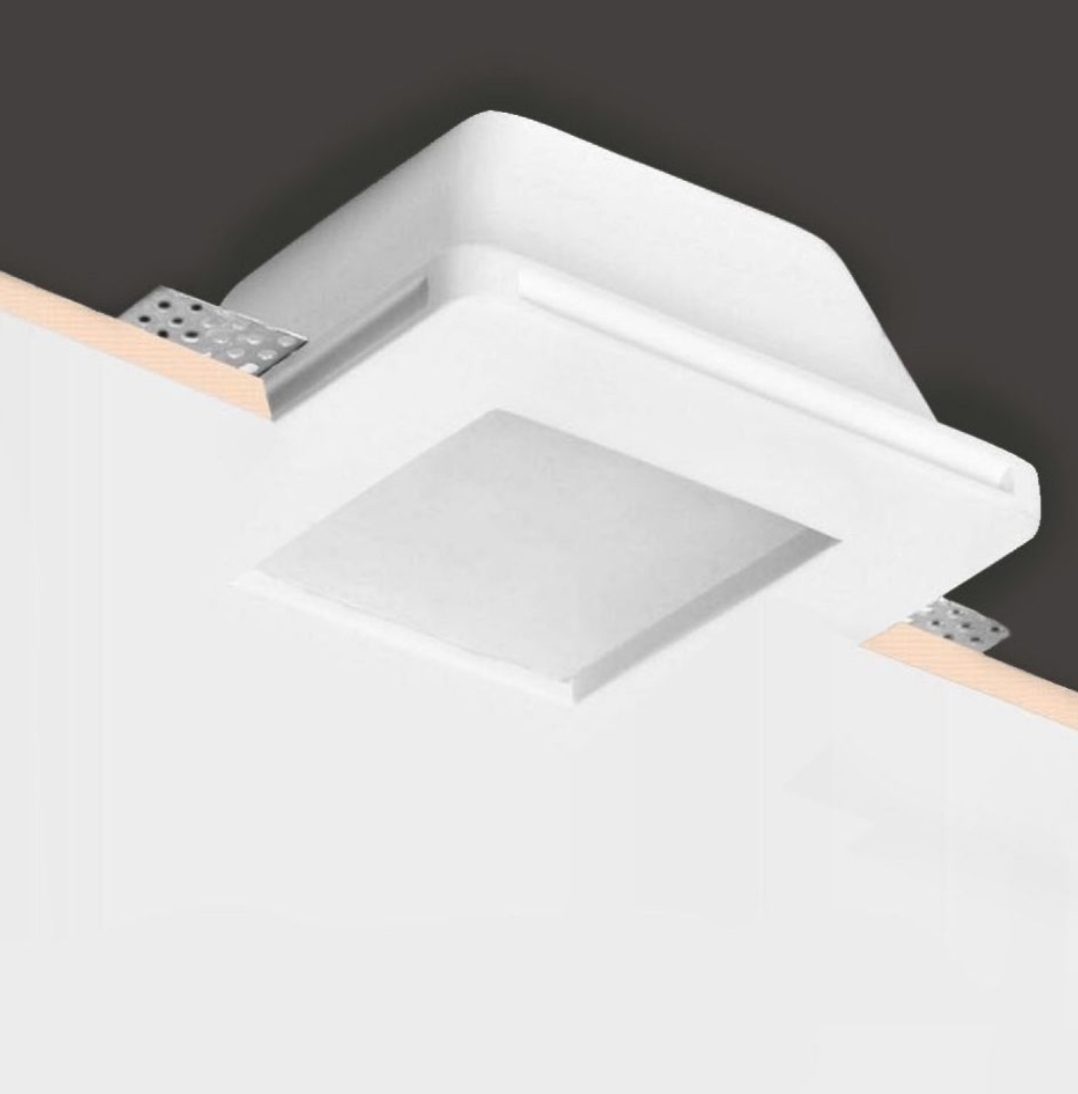 Design elegante e discreto – Portafaretto da incasso in gesso con vetro satinato per un’illuminazione raffinata e uniforme.