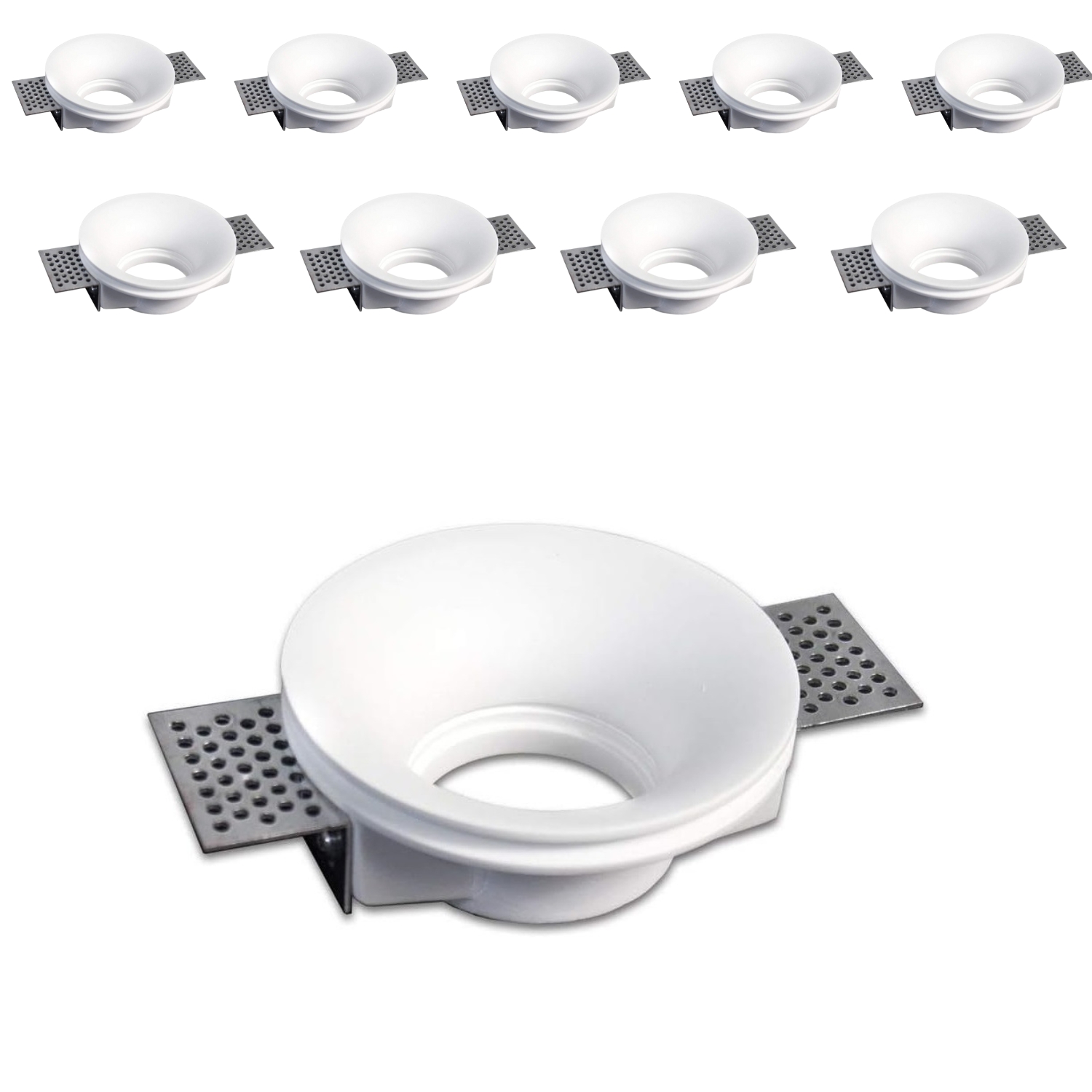Installazione a scomparsa: Portafaretto in gesso da incasso progettato per integrarsi perfettamente nei soffitti in cartongesso; crea un effetto luce elegante e senza interruzioni.