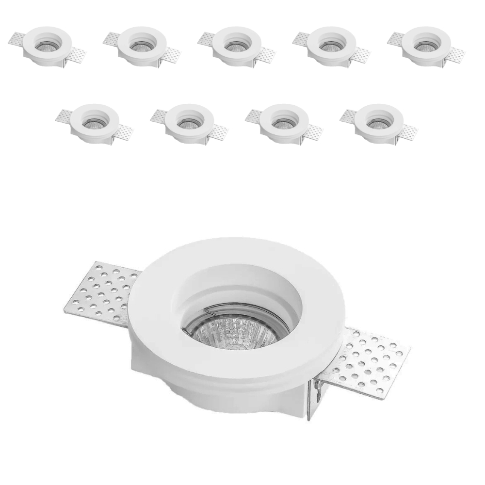 10PZ Portafaretto da Incasso in Gesso Rotondo a Scomparsa Compatibile con Faretti GU10 Foro Incasso 105mm Dimensioni 100 x 33 mm Design Elegante per Soffitti Moderni