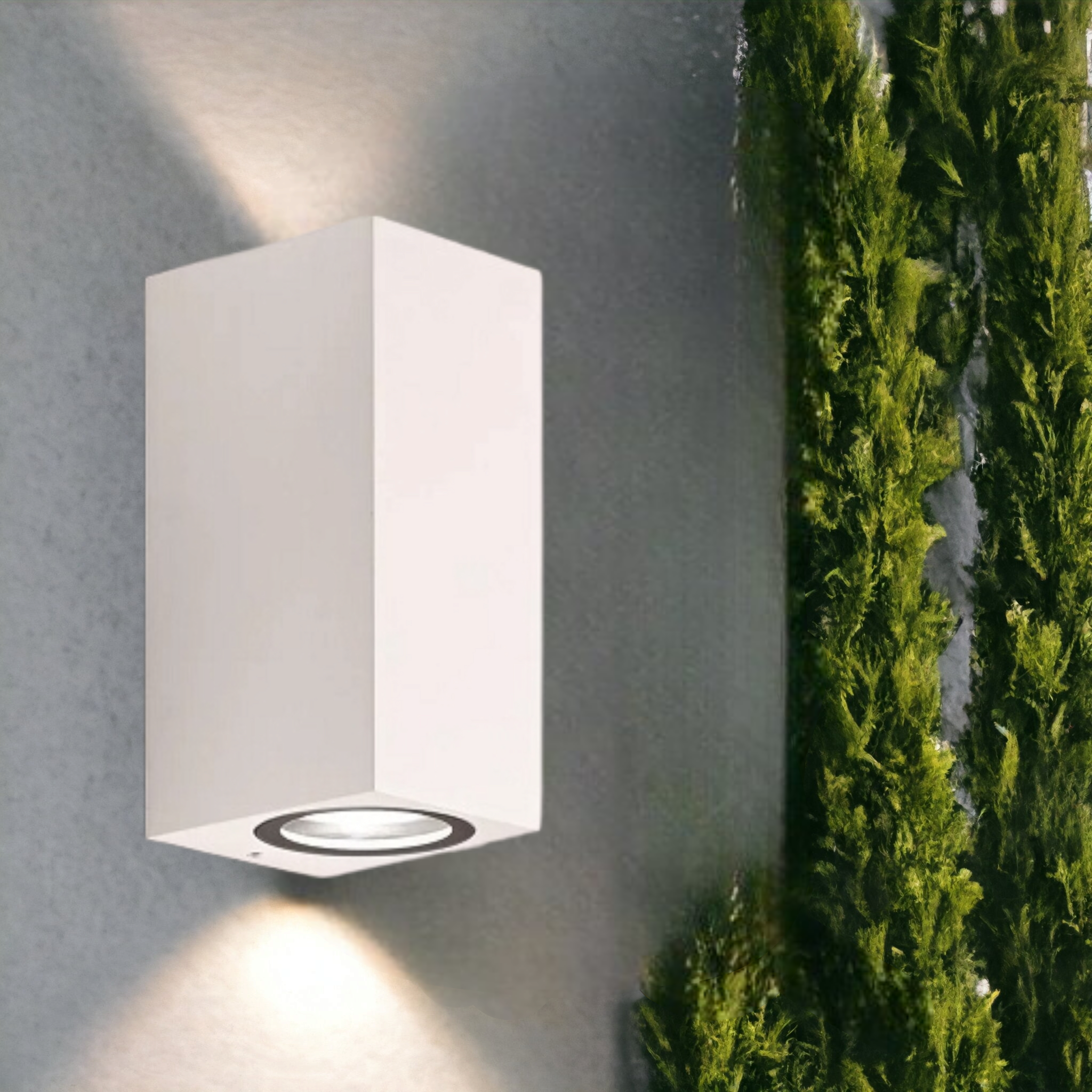 Applique bianco da esterno ip65 lampada a parete moderna doppia luce con attacco gu10 biemissione per giardini terrazze balconi