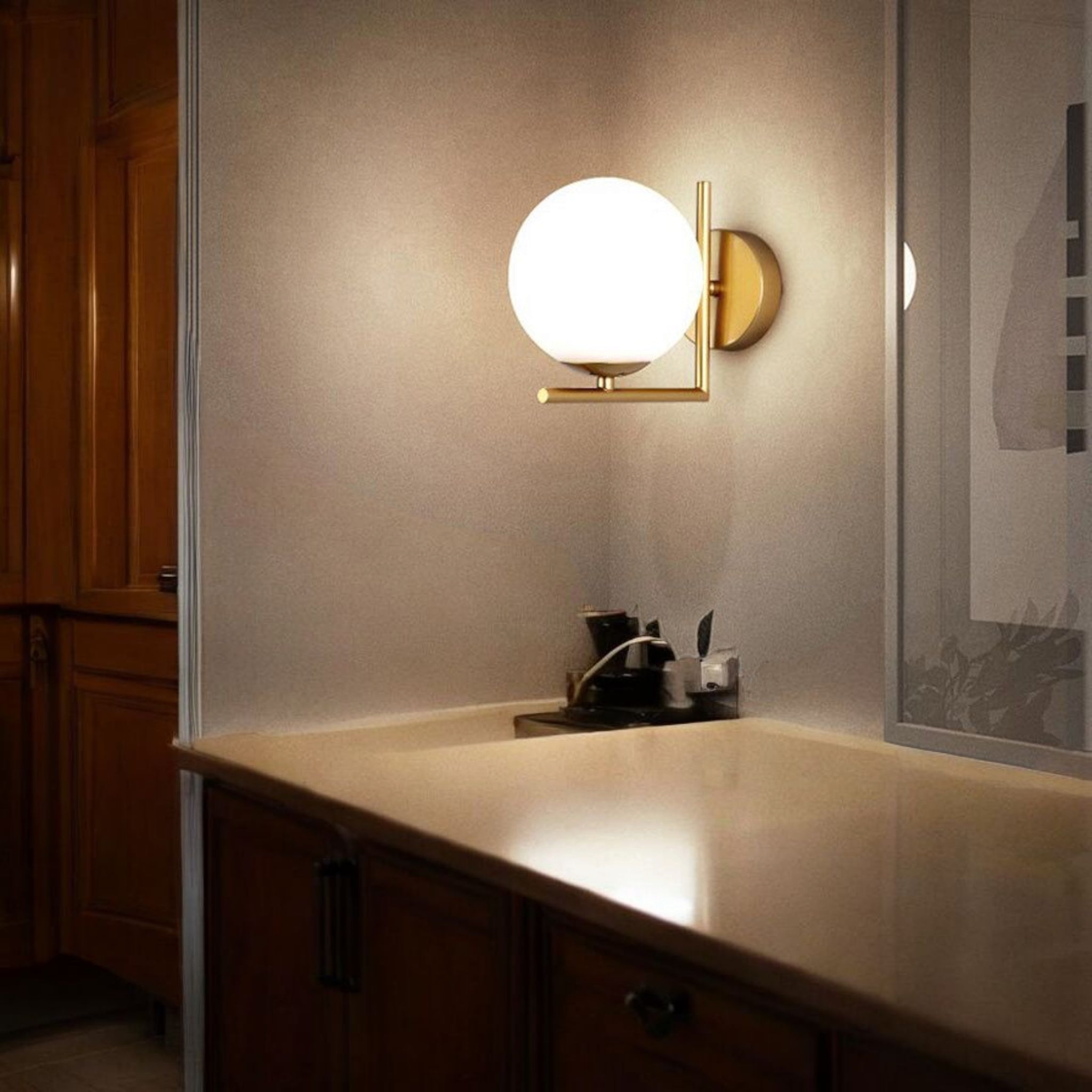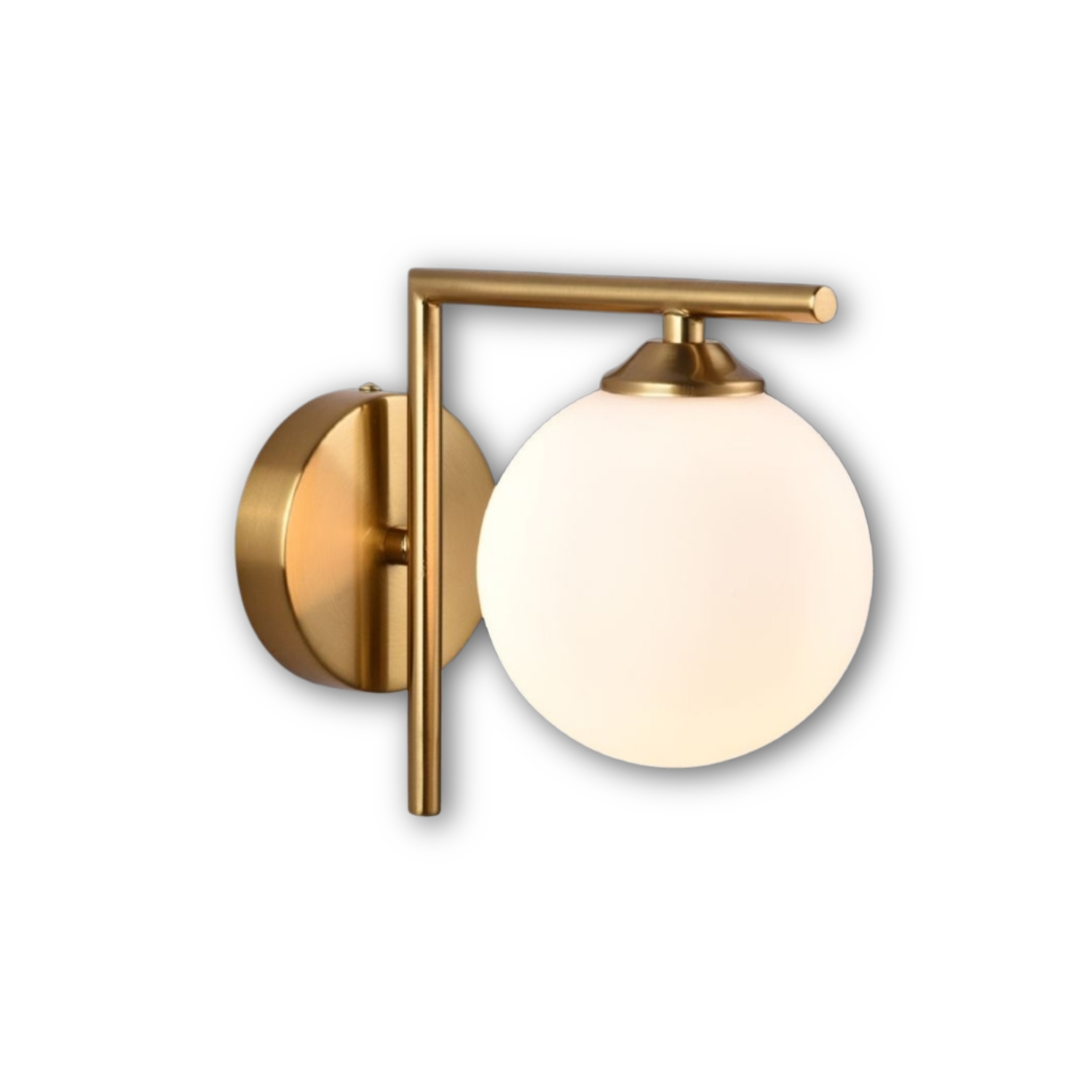 Questa elegante applique da parete combina design moderno e materiali di qualità per offrire un'illuminazione sofisticata e funzionale. Realizzata in metallo satinato oro, è dotata di un raffinato paralume a sfera in vetro opalino bianco, che diffonde la luce in modo uniforme, creando un'atmosfera accogliente.