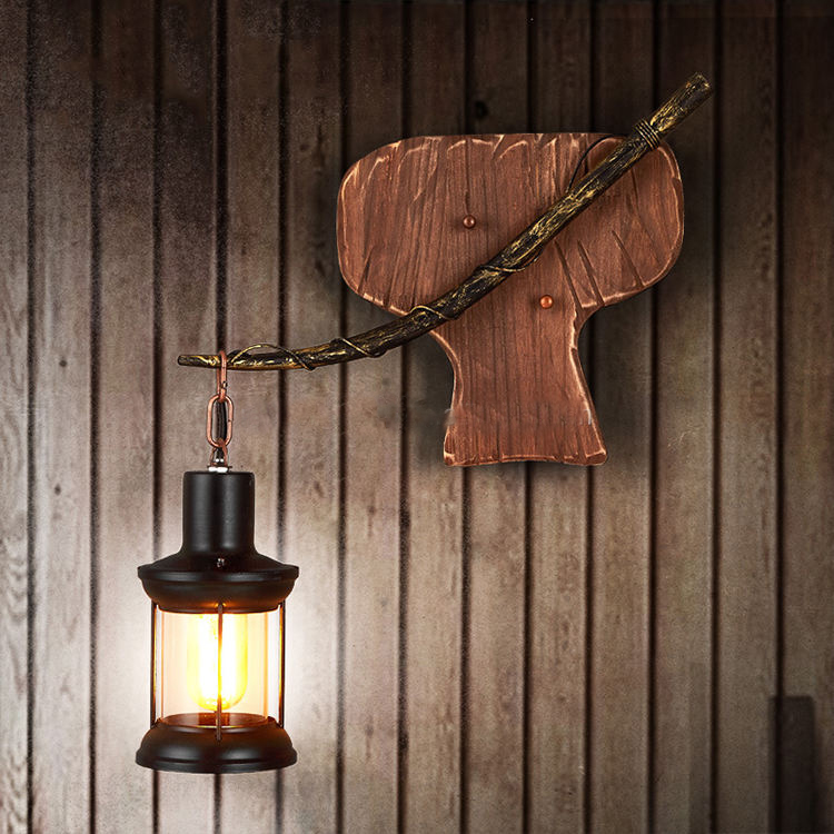 Applique da parete per interno lampada a muro in legno con lanterna stile country rustico con attacco E27