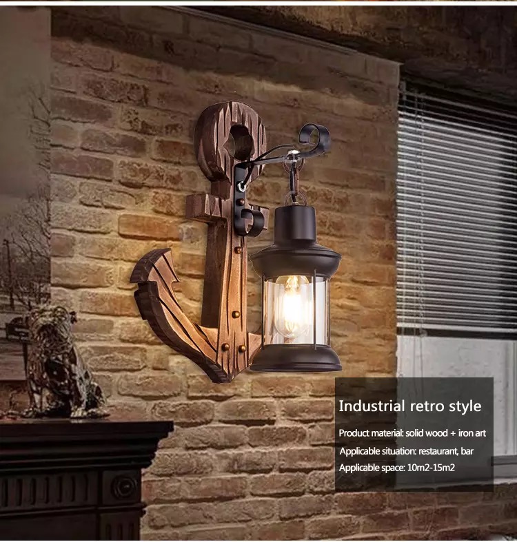 Lampada per interno da parete realizzata in legno dall'effetto retrò e rustico adatta per abbellire e decorare la vostra casa rustica o per pub, ristoranti, pizzerie, taverne, e tutti quei posti dove si vuole dare un tocco rustico all'ambiente.
