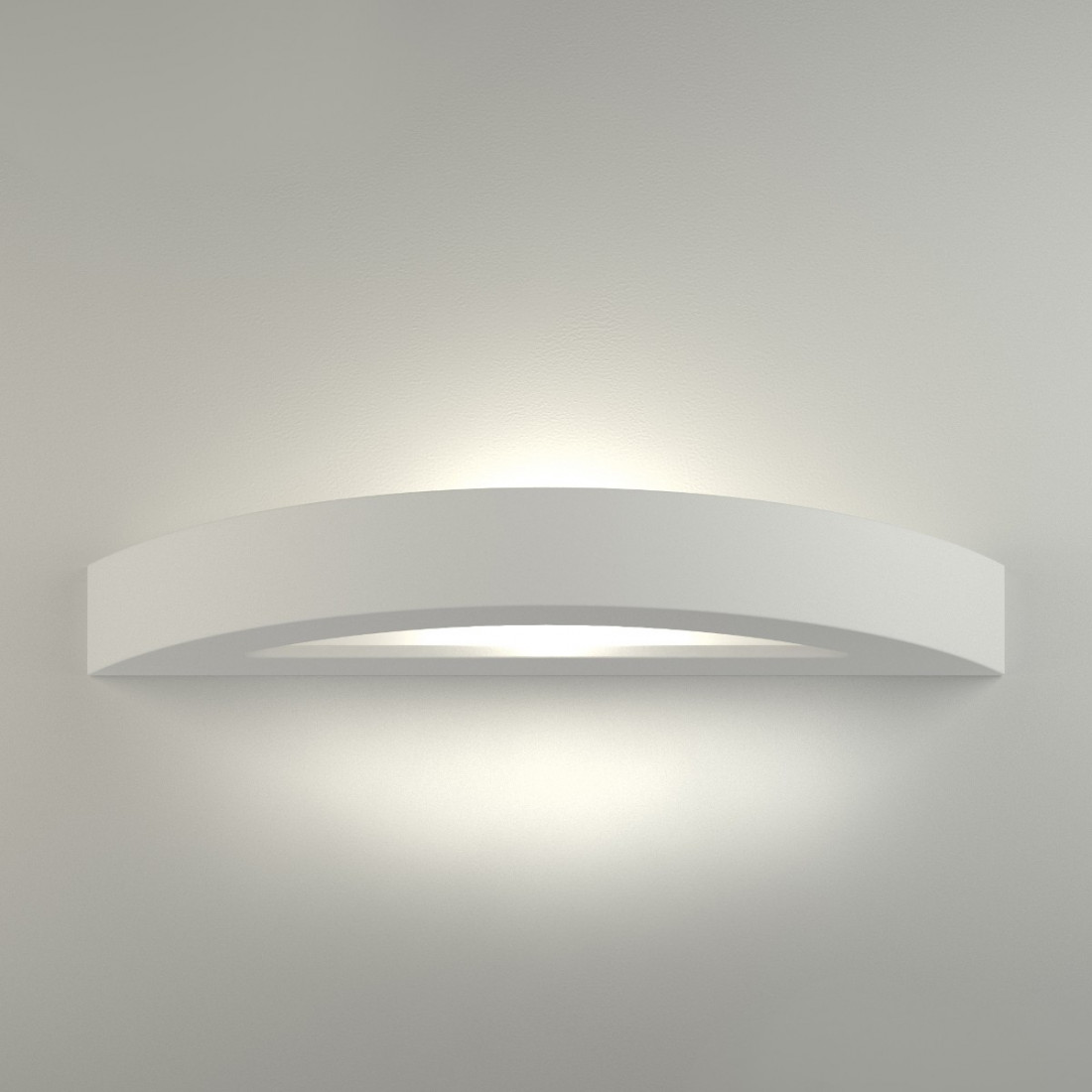 Applique da parete a doppia emissione di luce su e giu “up e down” . Struttura completamente in gesso verniciabile con diffusore in vetro nella parte inferiore. Dai la giusta luce alle tue stanze con questa applique dal design moderno ideale per creare punti luce in soggiorno, camera da letto, scale, cucina, bar, studio, ufficio, ristoranti, hotel, negozi, caffè. L'intera lampada è realizzata in gesso che le da un effetto visivo molto piacevole ed elegante.
