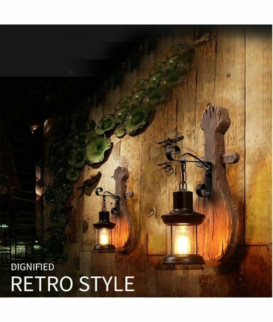 APPLIQUE LAMPADA DA PARETE A MURO PER INTERNO E27 LANTERNA RETRO VINTAGE LEGNO