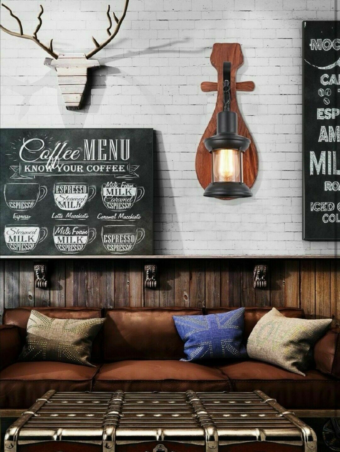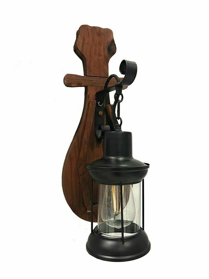 APPLIQUE LAMPADA DA PARETE A MURO PER INTERNO E27 LANTERNA RETRO VINTAGE LEGNO