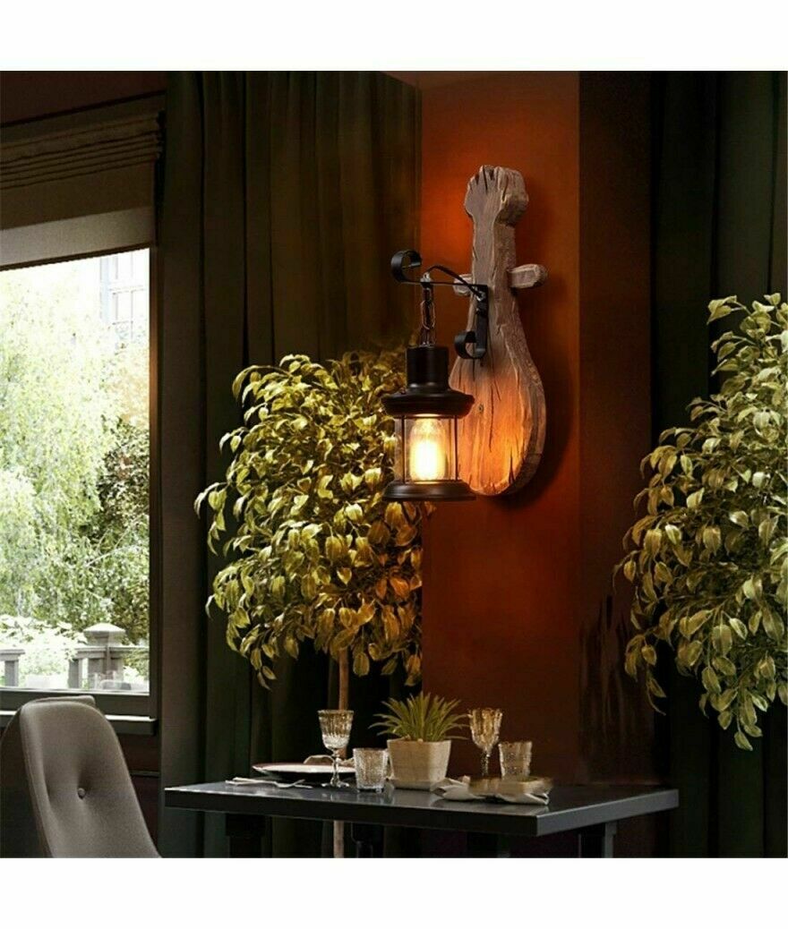 APPLIQUE LAMPADA DA PARETE A MURO PER INTERNO E27 LANTERNA RETRO VINTAGE LEGNO