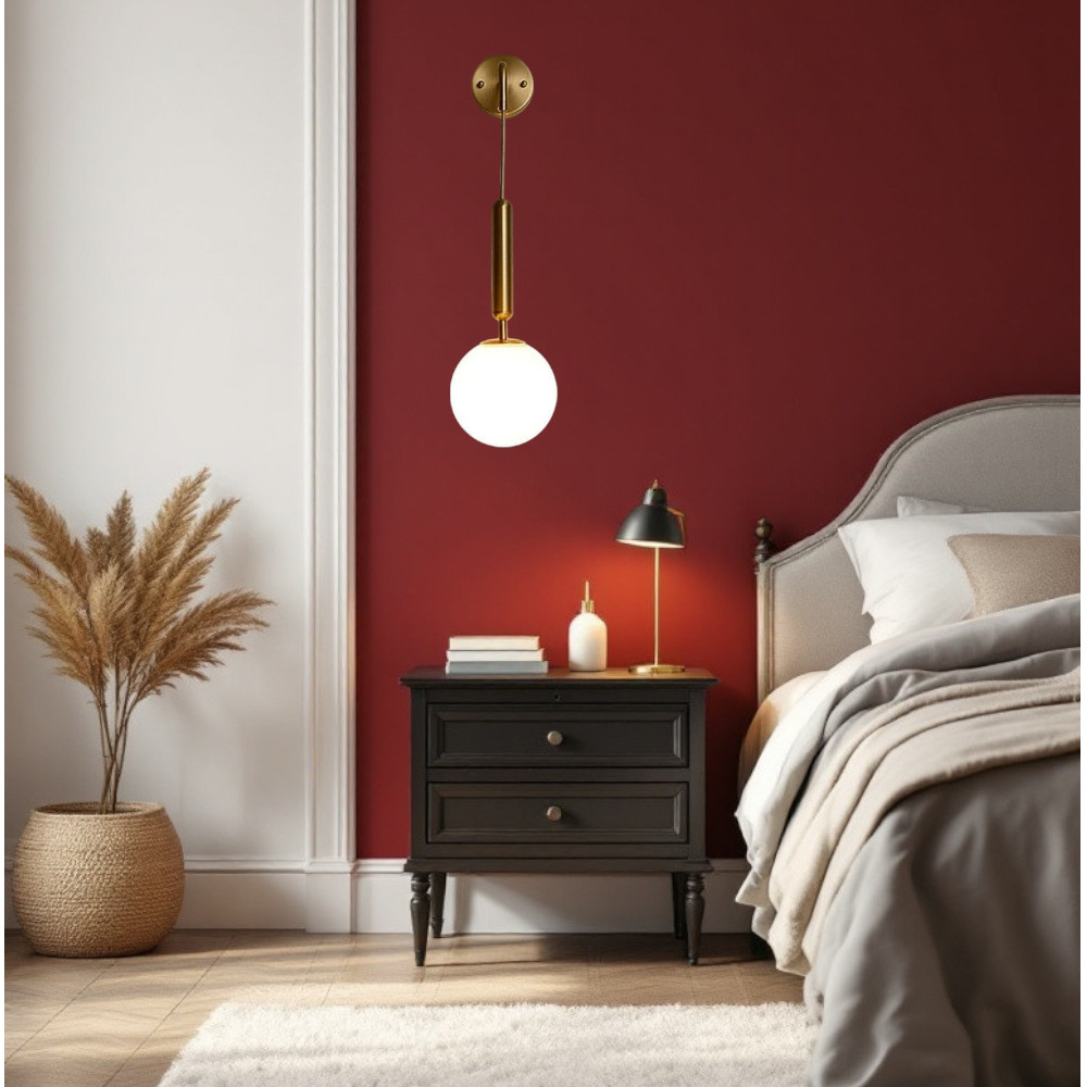 Aggiungi un tocco di eleganza e raffinatezza ai tuoi ambienti con questa applique da parete LED color oro, un perfetto equilibrio tra design minimalista e funzionalità. La struttura in metallo dorato si combina con una sfera opalina in acrilico da 15 cm, che diffonde una luce morbida e accogliente, perfetta per creare un’atmosfera rilassante.