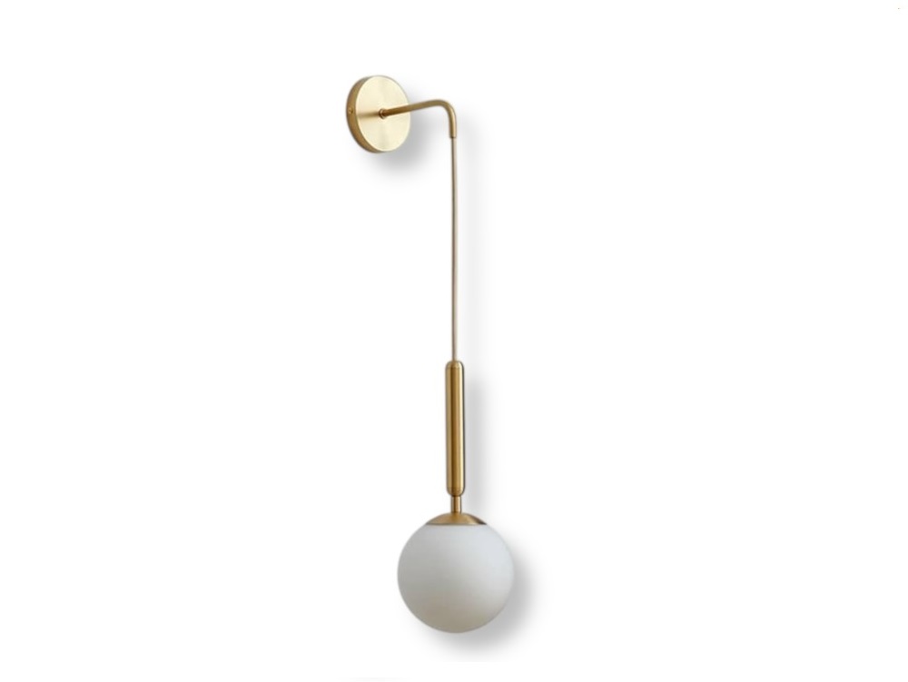 Aggiungi un tocco di eleganza e raffinatezza ai tuoi ambienti con questa applique da parete LED color oro, un perfetto equilibrio tra design minimalista e funzionalità. La struttura in metallo dorato si combina con una sfera opalina in acrilico da 15 cm, che diffonde una luce morbida e accogliente, perfetta per creare un’atmosfera rilassante.
