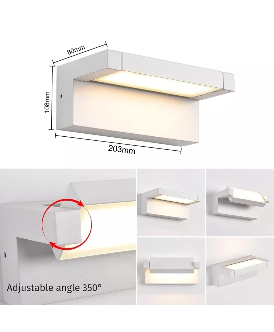 Realizzata in alluminio resistente con copertura in vetro, garantisce durata e affidabilità nel tempo. Il grado di protezione IP65 la rende adatta all'uso esterno, resistendo a pioggia e polvere. Grazie al design orientabile a 350°, puoi regolare la luce per adattarla alle tue esigenze.
