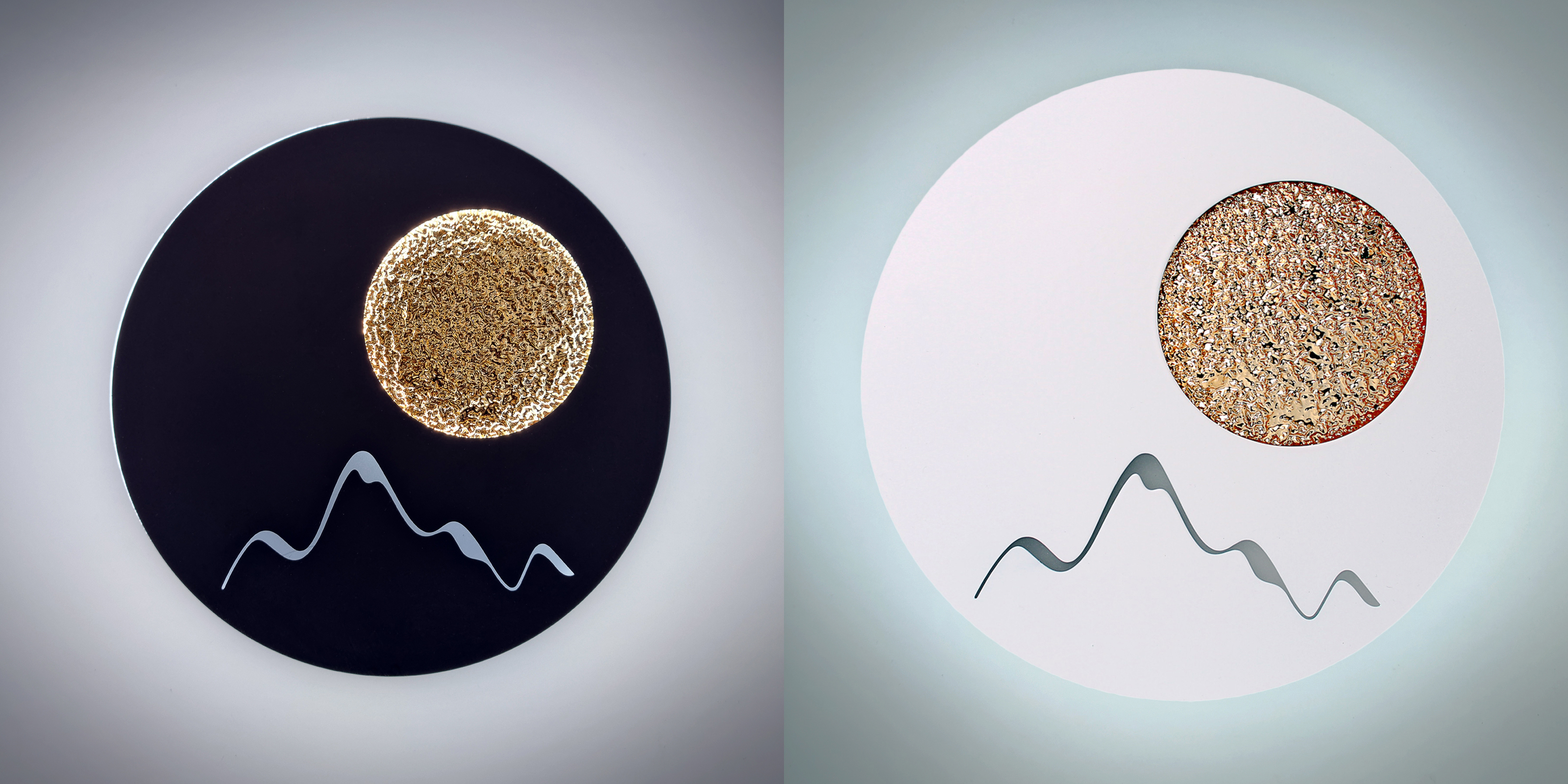Lampada da parete moderna led dalla potenza di 16W a forma tonda con la raffigurazione di montagne con la Luna (in rilievo). Quest' applique da parete è perfetto per il corridoio, soggiorno, stanza da letto, ufficio.