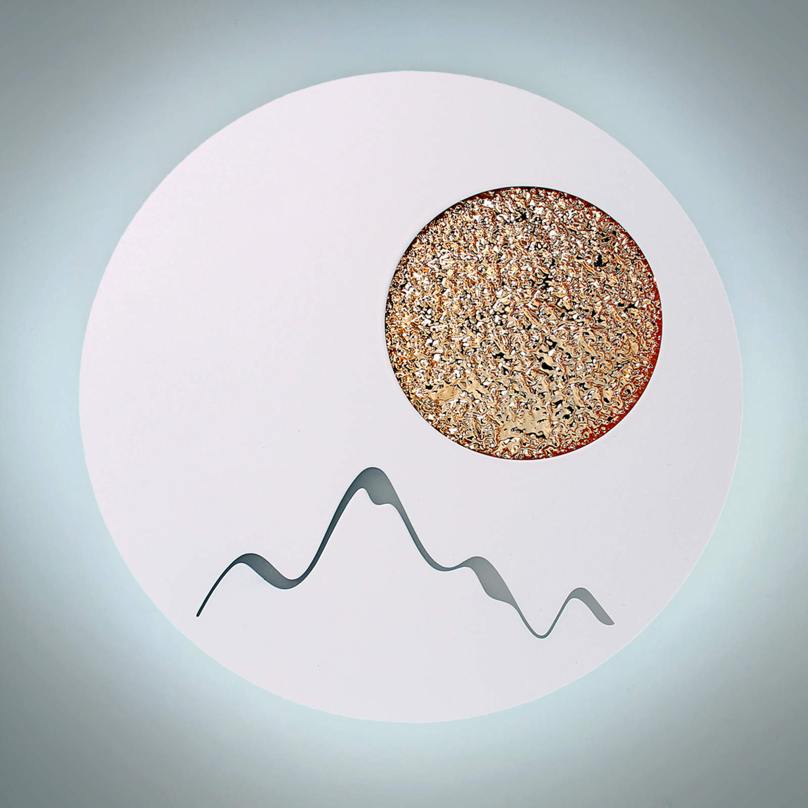 Lampada da parete moderna led dalla potenza di 16W a forma tonda con la raffigurazione di montagne con la Luna (in rilievo). Quest' applique da parete è perfetto per il corridoio, soggiorno, stanza da letto, ufficio.