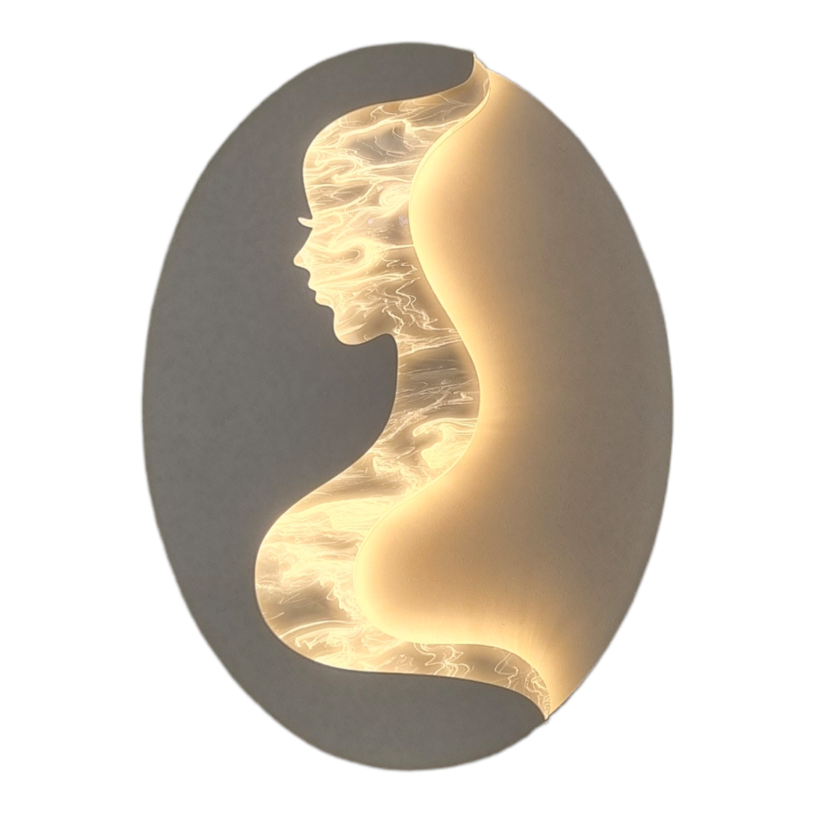 Il fascio luminoso di 60° permette di illuminare specifiche aree della tua stanza, creando un'atmosfera accogliente e invitante. La forma ovale dell'applique con la silhouette di una donna all'interno dona un tocco di eleganza e originalità al tuo ambiente.