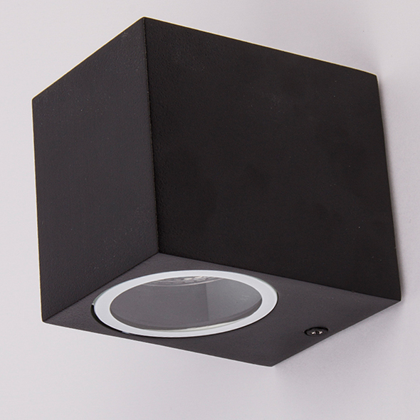 Materiale:acciaio pressofuso satinato e vetro temperato Attacco GU10 Alimentazione 220v Grado di protezione: IP65 Dimensioni: 80x80x68 mm N.B. Lampadina non inclusa Colore disponibile: nero