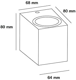 Materiale:acciaio pressofuso satinato e vetro temperato Attacco GU10 Alimentazione 220v Grado di protezione: IP65 Dimensioni: 80x80x68 mm N.B. Lampadina non inclusa Colore disponibile: nero
