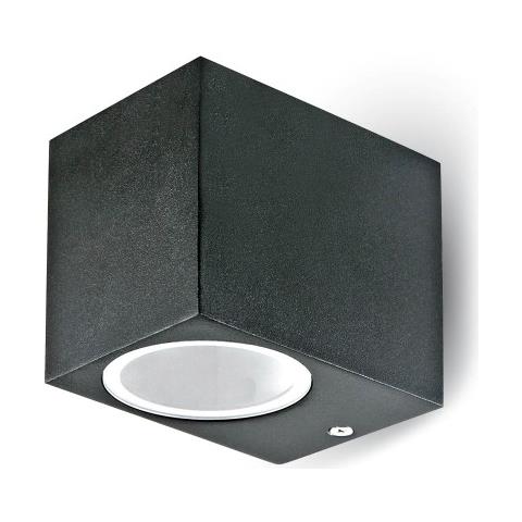 Materiale:acciaio pressofuso satinato e vetro temperato Attacco GU10 Alimentazione 220v Grado di protezione: IP65 Dimensioni: 80x80x68 mm N.B. Lampadina non inclusa Colore disponibile: nero