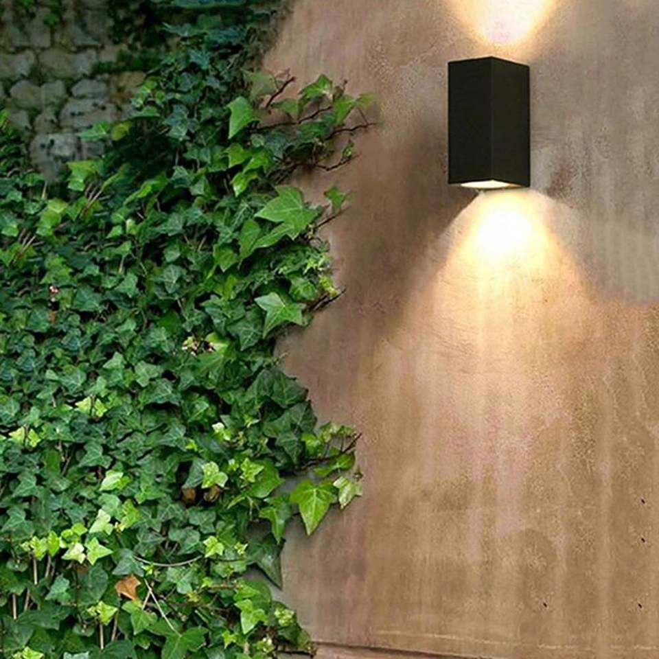 Applique nero da esterno ip65 lampada a parete moderna doppia luce con attacco gu10 biemissione per giardini terrazze balconi