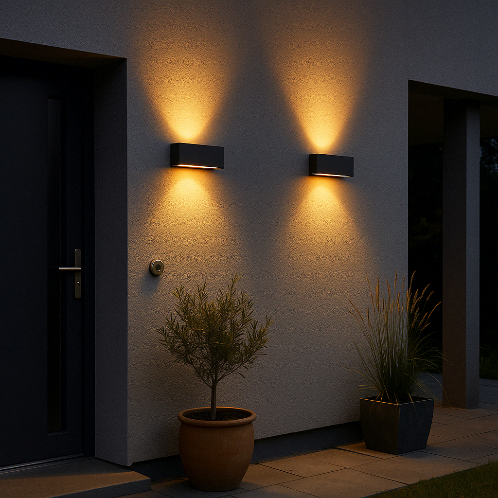 Effetto luminoso decorativo up&down; Biemissione per un’illuminazione a parete elegante e moderna, ideale per facciate e ingressi