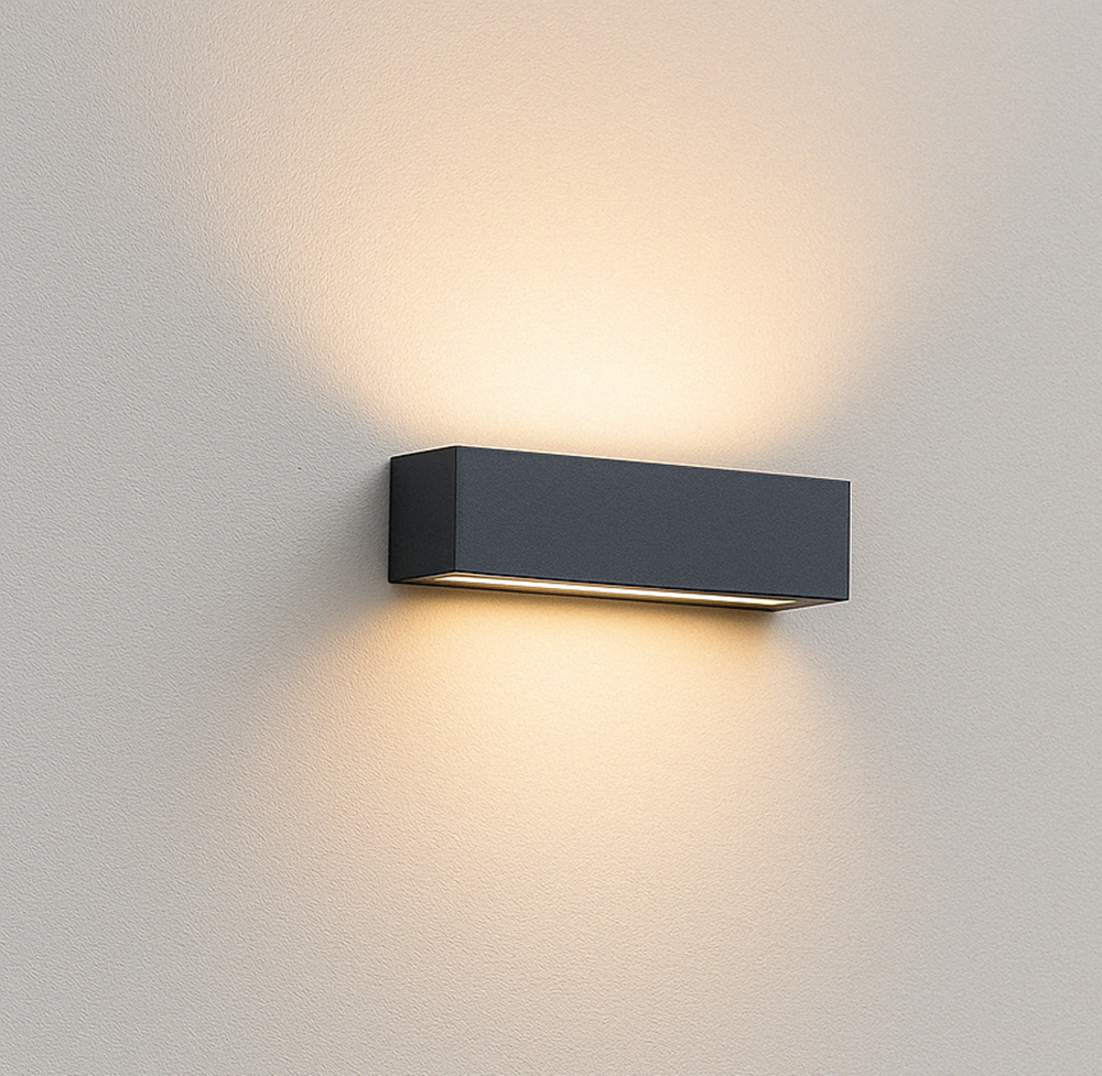 Effetto luminoso decorativo up&down; Biemissione per un’illuminazione a parete elegante e moderna, ideale per facciate e ingressi