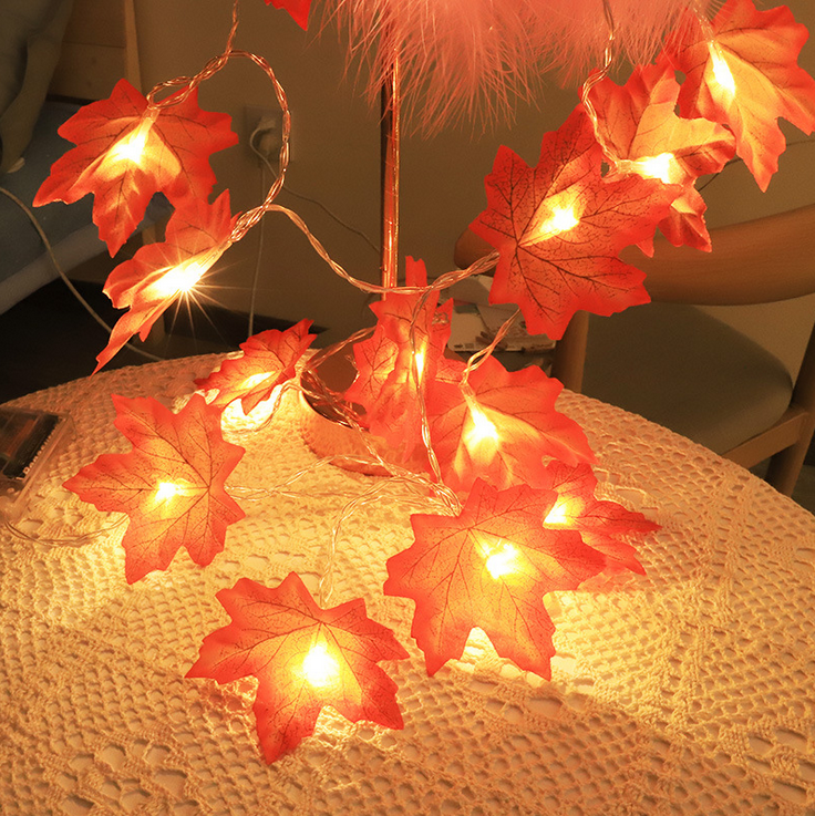 Catena luminosa con foglie d'acero e 10 led a luce calda, ottima per decorare la vostra abitazione per eventi come halloween, natale o semplicemente potete usarle come decorazioni autunnali.