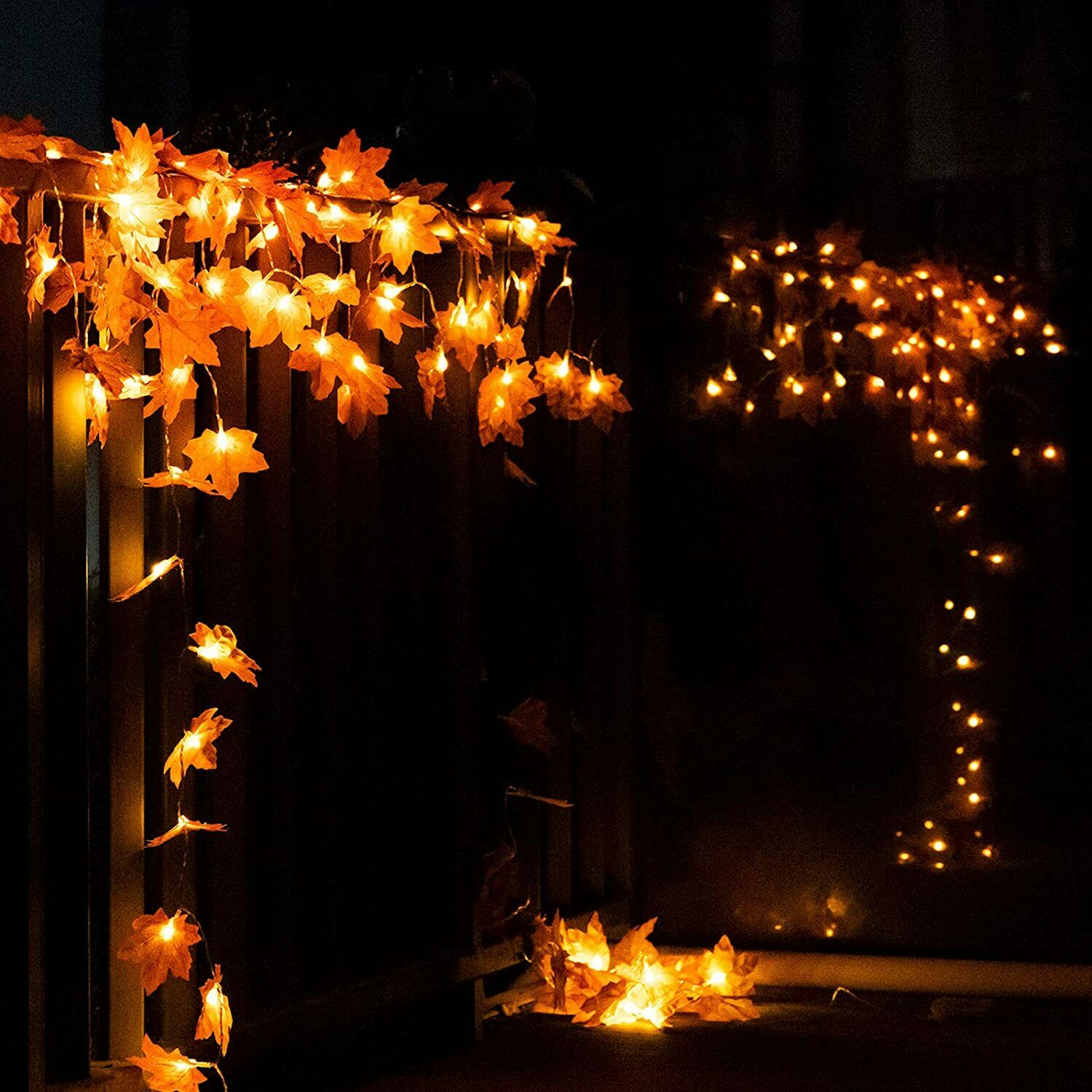 Catena luminosa con foglie d'acero e 10 led a luce calda, ottima per decorare la vostra abitazione per eventi come halloween, natale o semplicemente potete usarle come decorazioni autunnali.