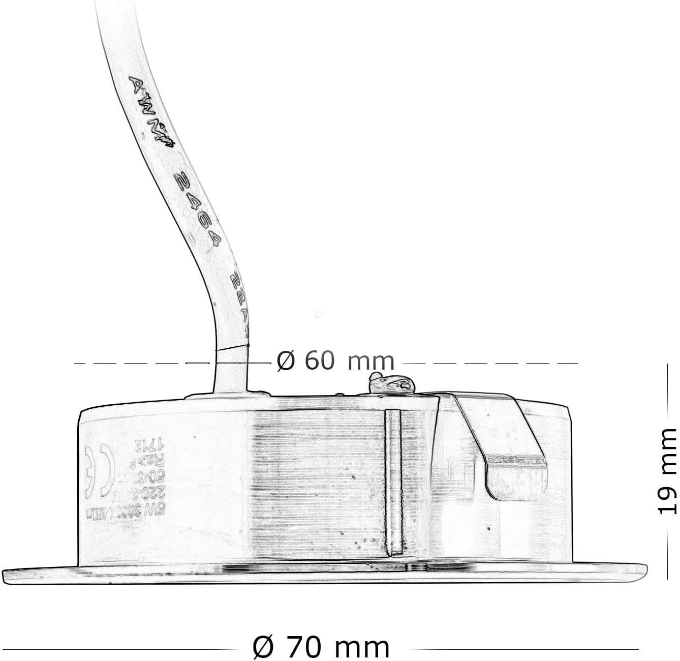 Dimensioni: Ø 70 x 19 mm incasso: Ø 60 mm