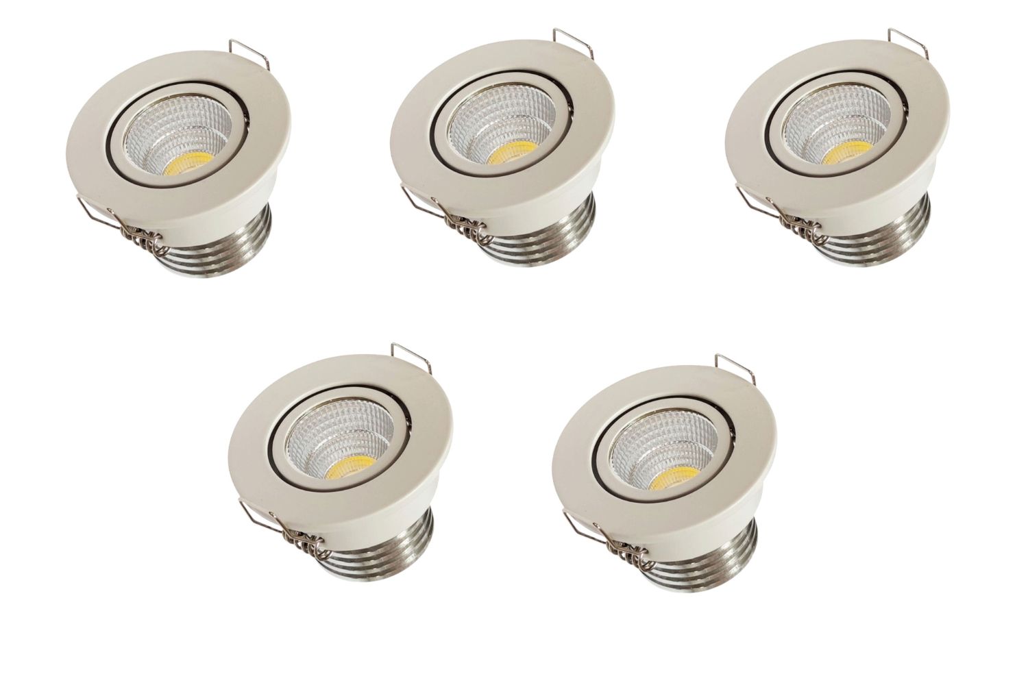 Kit 5 Faretti bianchi LED da Incasso 3W COB Orientabili Luce calda 3000K 270 Lumen Foro 45mm Diametro 52mm