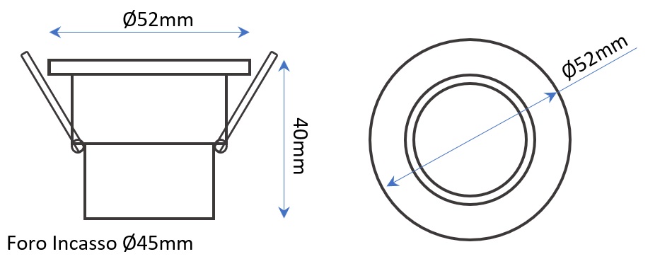 4. Facili da installare: Dimensioni Ø52 x 40mm con foro d'incasso di Ø45mm, adatti per controsoffitti.