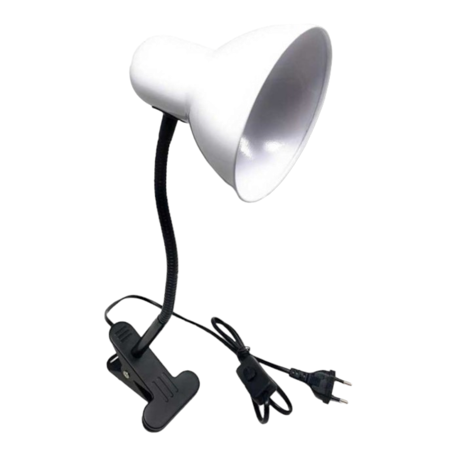 Lampada da Tavolo bianca in Metallo con Braccio flessibile Testa Girevole e pinza Attacco E27 Ideale per Scrivania lettura studio