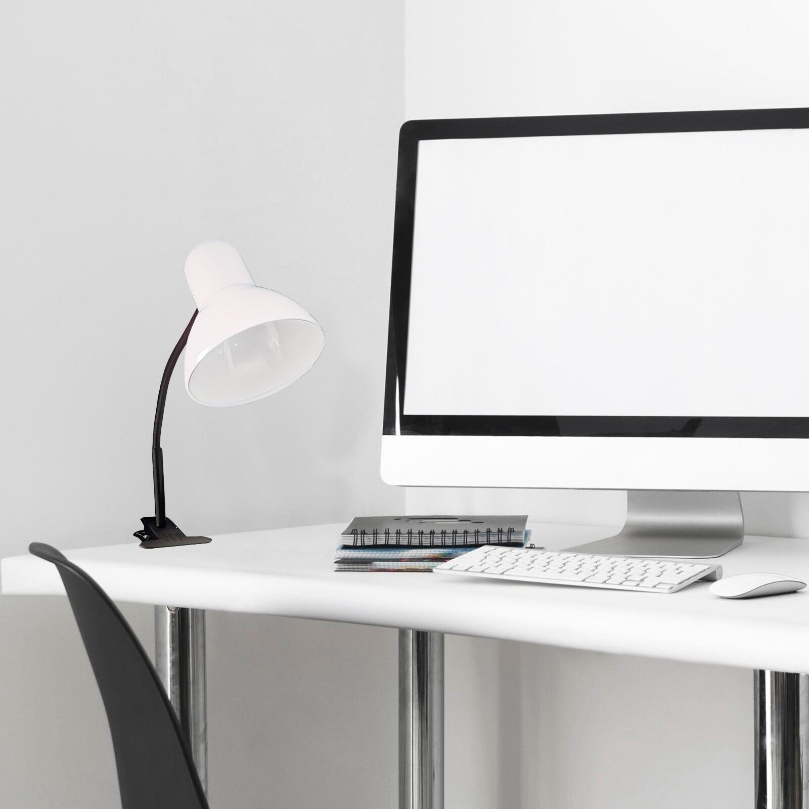Lampada da Tavolo bianca in Metallo con Braccio flessibile Testa Girevole e pinza Attacco E27 Ideale per Scrivania lettura studio