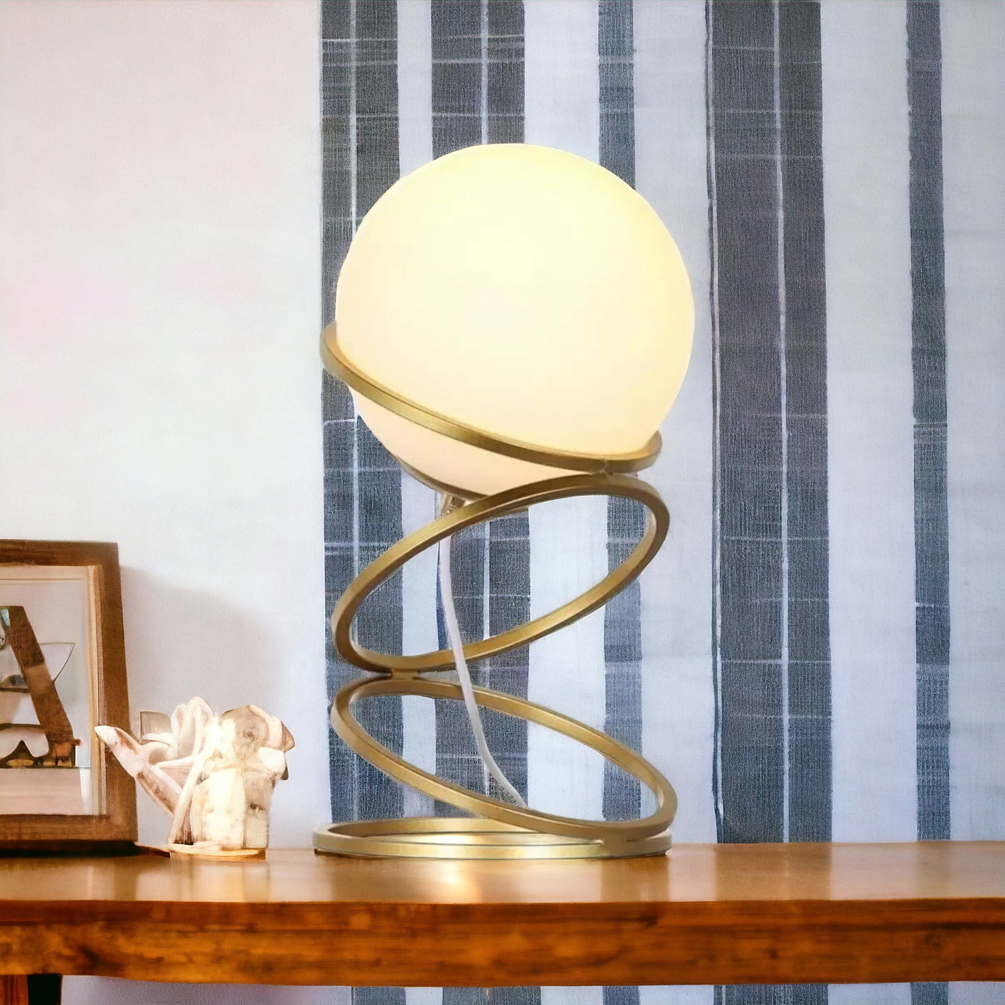 Lampada da Tavolo Minimalista Bronzo con Sfera in Vetro Bianco Design Elegante per Illuminare e Decorare Spazi Interni Adatta a Comodini Scrivanie e Tavolini Altezza 26 cm