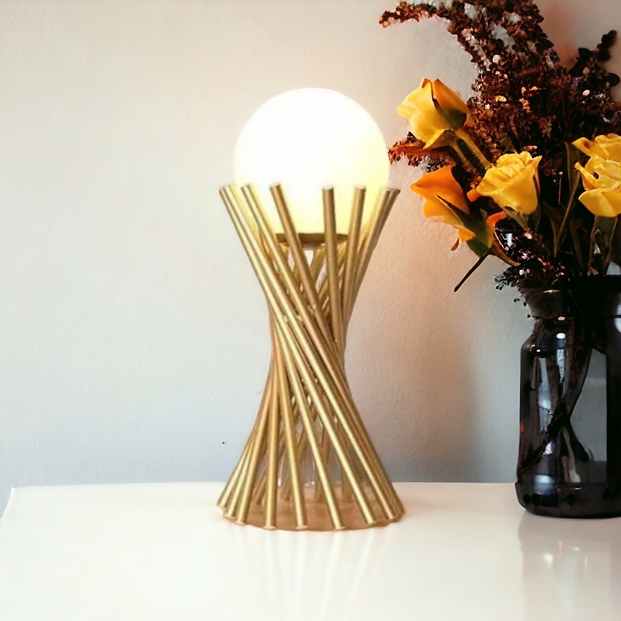 Illumina con stile e eleganza i tuoi spazi grazie alla nostra lampada da tavolo moderna dal design minimalista e all'avanguardia. Realizzata con tubolari color bronzo dorato e un paralume sferico in vetro, questa lampada aggiunge un tocco di originalità ad ogni ambiente. Perfetta per arredare e illuminare con stile scrivanie, comodini, comò e altri mobili bassi. Il suo design unico si integra perfettamente negli ambienti moderni, offrendo un'illuminazione ambientale confortevole e rilassante. Realizzata con materiali di alta qualità come il metallo e il vetro, la nostra lampada da tavolo è sinonimo di durata e affidabilità nel tempo. Dotata di attacco per lampadina G9 (lampadina non inclusa) e un cavo di alimentazione di 90 cm con interruttore, offre una facile installazione e un comodo utilizzo quotidiano.