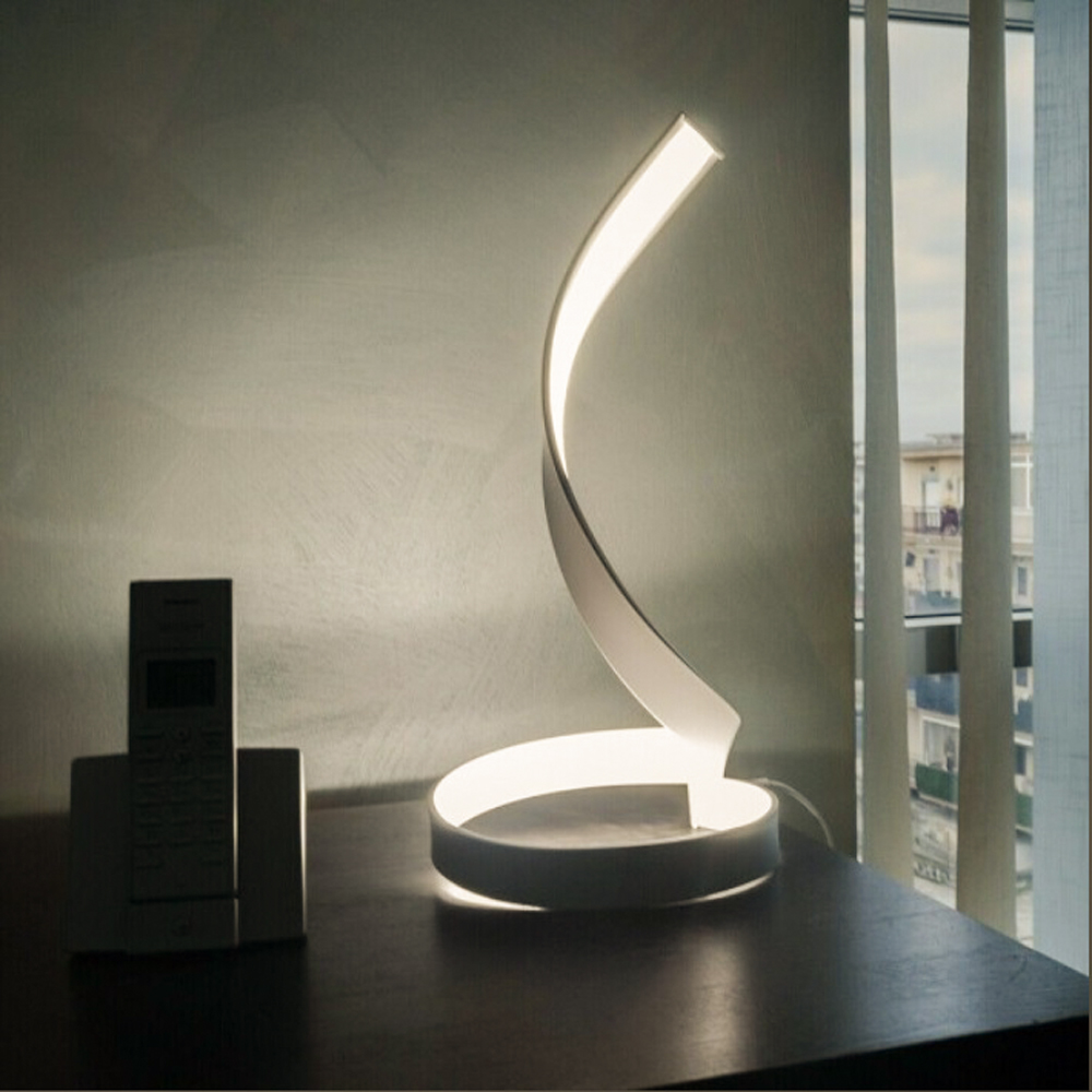 Lampada dal design moderno con forma spirale del tutto originale. Particolarmente indicata per ambienti moderni da posizionare su scrivanie, mobiletti bassi o in camera da letto. Realizzata in alluminio verniciato di colore bianco, facile da installare grazie alla base d’appoggio. Dotata di led integrati con una potenza di 12 watt che costeggiano tutta la parte interna della lampada. Fornita completa di interruttore e alimentatore.