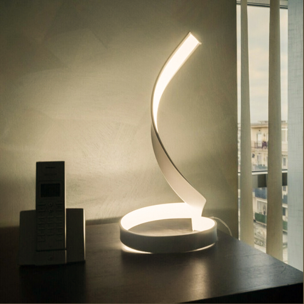 Lampada dal design moderno con forma spirale del tutto originale. Particolarmente indicata per ambienti moderni da posizionare su scrivanie, mobiletti bassi o in camera da letto. Realizzata in alluminio verniciato di colore bianco, facile da installare grazie alla base d’appoggio. Dotata di led integrati con una potenza di 12 watt che costeggiano tutta la parte interna della lampada. Fornita completa di interruttore e alimentatore.