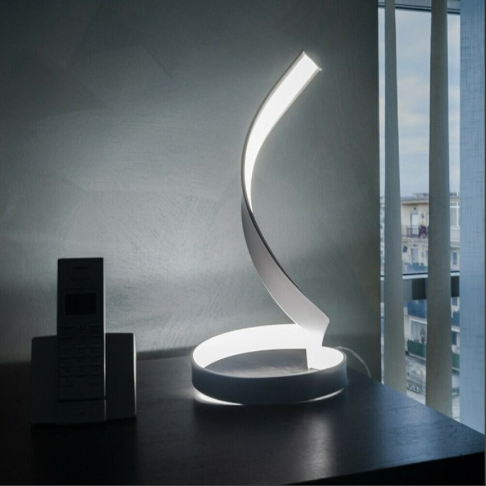 Lampada dal design moderno con forma spirale del tutto originale. Particolarmente indicata per ambienti moderni da posizionare su scrivanie, mobiletti bassi o in camera da letto. Realizzata in alluminio verniciato di colore bianco, facile da installare grazie alla base d’appoggio. Dotata di led integrati con una potenza di 12 watt che costeggiano tutta la parte interna della lampada. Fornita completa di interruttore e alimentatore.