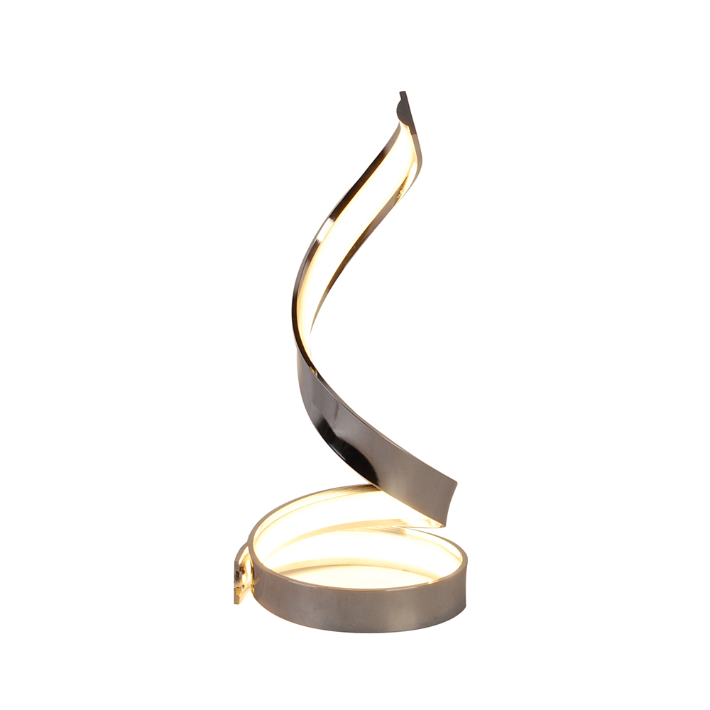 Lampada dal design moderno con forma spirale del tutto originale. Particolarmente indicata per ambienti moderni da posizionare su scrivanie, mobiletti bassi o in camera da letto. Realizzata in alluminio verniciato di colore bianco, facile da installare grazie alla base d’appoggio. Dotata di led integrati con una potenza di 12 watt che costeggiano tutta la parte interna della lampada. Fornita completa di interruttore e alimentatore.