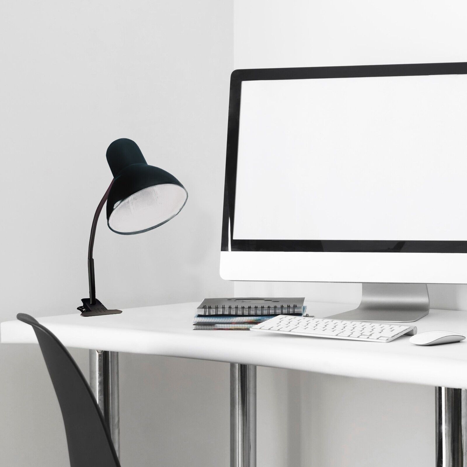 Lampada da Tavolo nera in Metallo con Braccio flessibile Testa Girevole e pinza Attacco E27 Ideale per Scrivania lettura studio