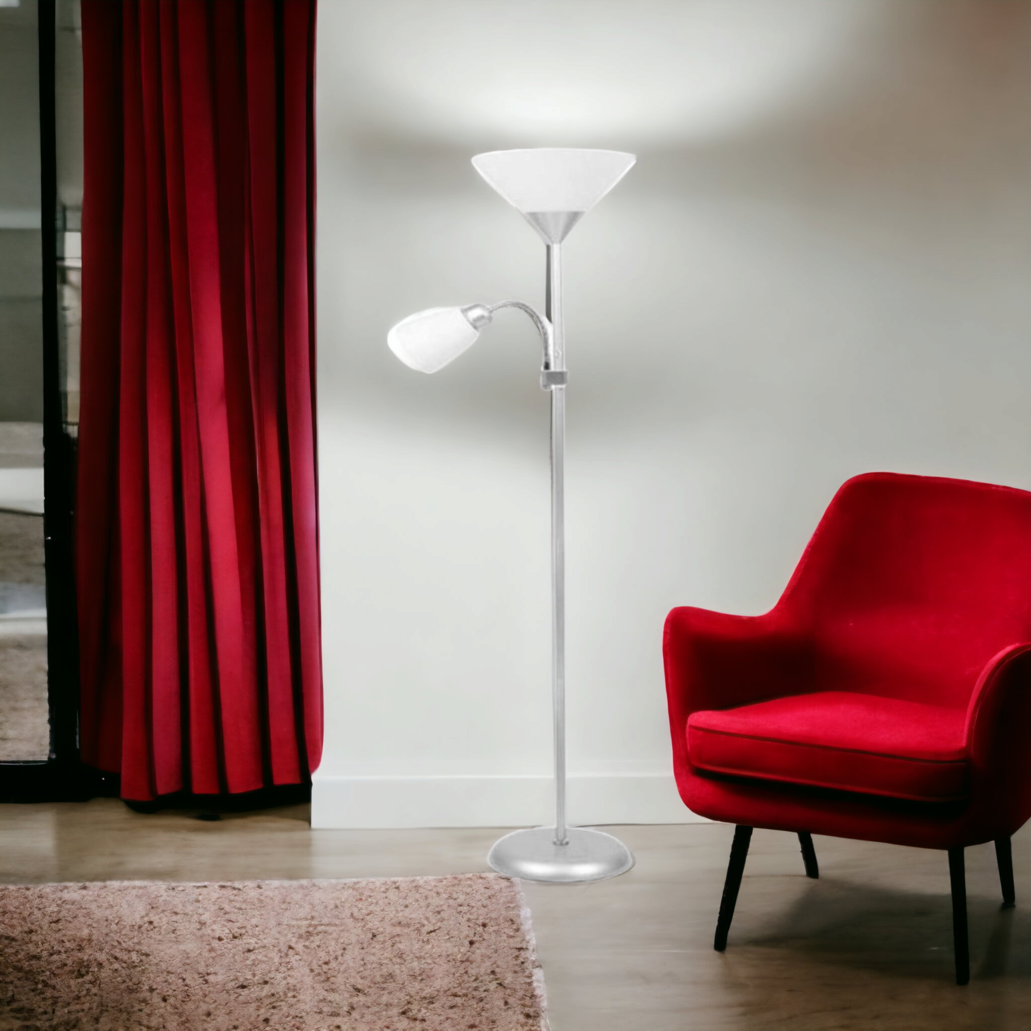 Lampada da Terra a piantana argentata dal Design Moderno in Metallo con Braccio Orientabile e Paralume Opaco Adatta a Salotti Facile Installazione Utilizza Lampadine E27 non incluse