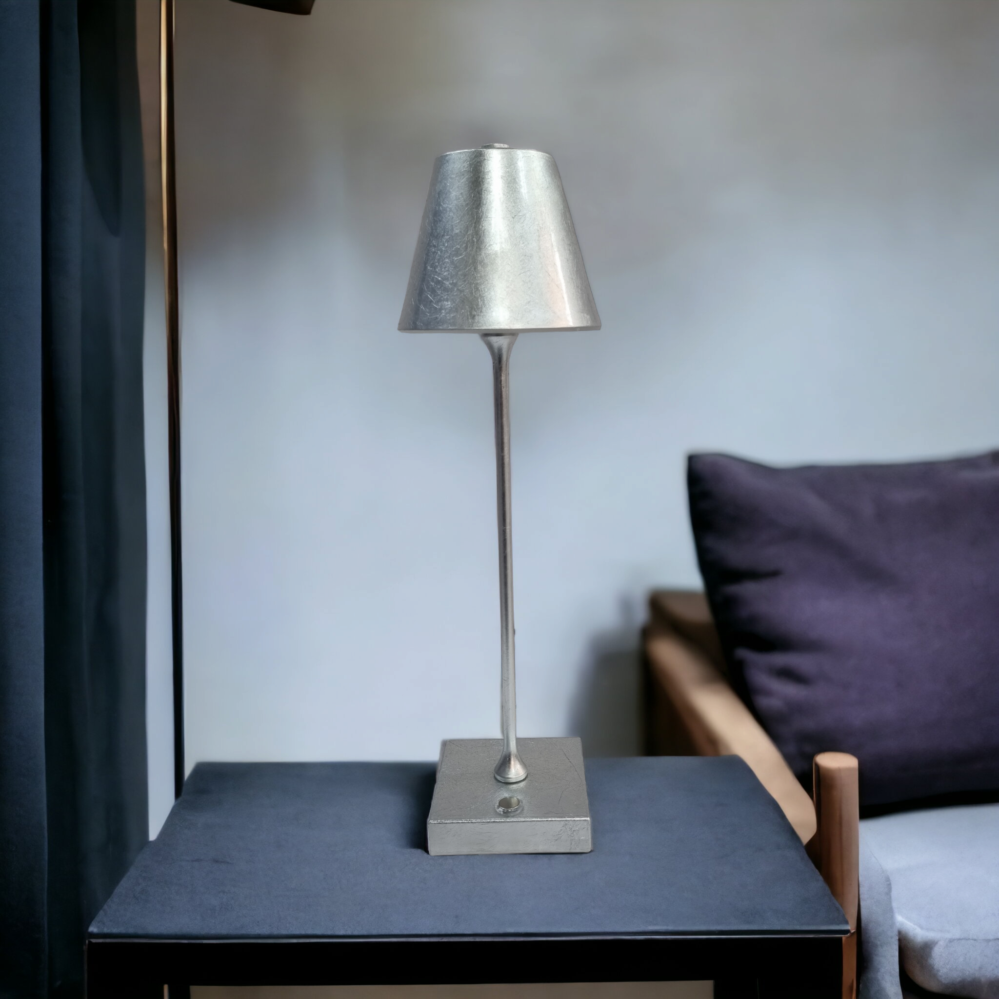 Lampada led da tavolo touch argentata con batteria ricaricabile usb con 3 tonalita di colore dimmerabile