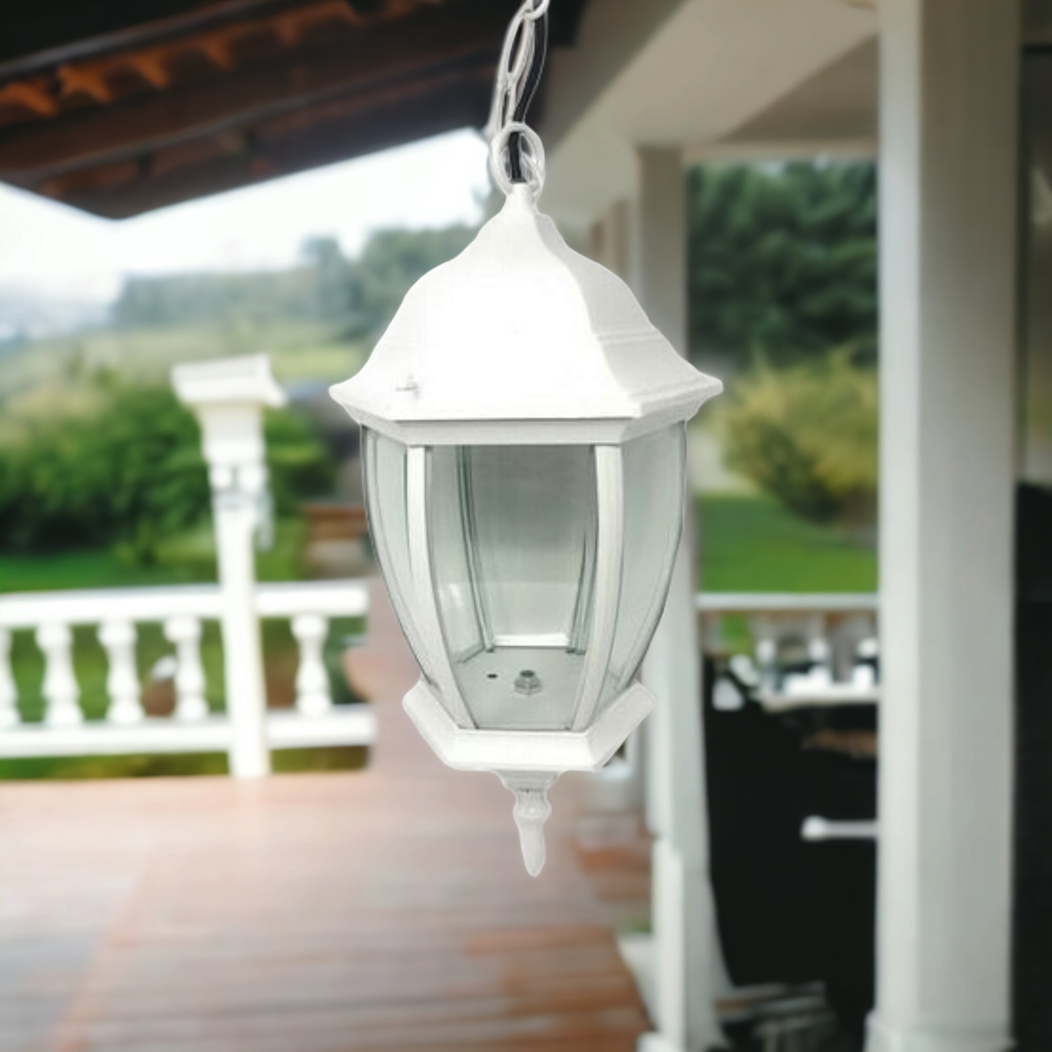 Il contenuto della confezione: N 1 lanterna con catenella sospesa viti e bulloni per il montaggio.