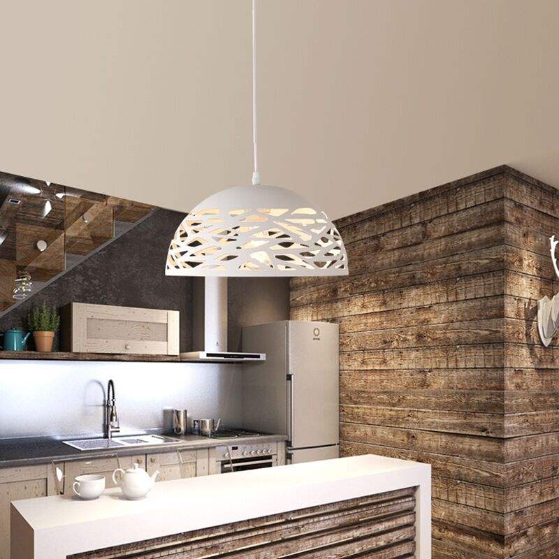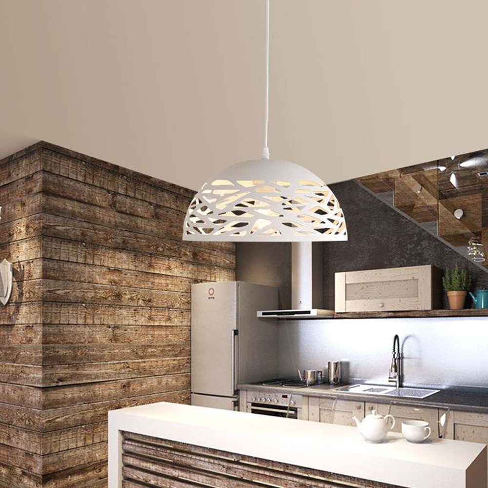 Lampadario a sospensione composto da un paralume traforato in metallo verniciato per un emissione di luce a 360°, dal design contemporaneo ideale per valorizzare ambienti di casa come cucina e corridoi. I suoi lineamenti semplici lo rendono un pendente adatto anche per spazi pubblici come negozi, ristoranti, pub e uffici. Portalampada per lampadine E27 (lampada non inclusa) Dimensioni: Lunghezza cavo totale 120 cm circa (regolabile in base alle proprie esigenze) Diametro base soffitto 12cm Diametro paralume 36 cm. Colore: Nero o bianco Alimentazione 230v L'offerta prevede l'acquisto di nr 1 lampadario, le foto dove vengono inllustrati più lampadari sono solo a scopo illustrativo