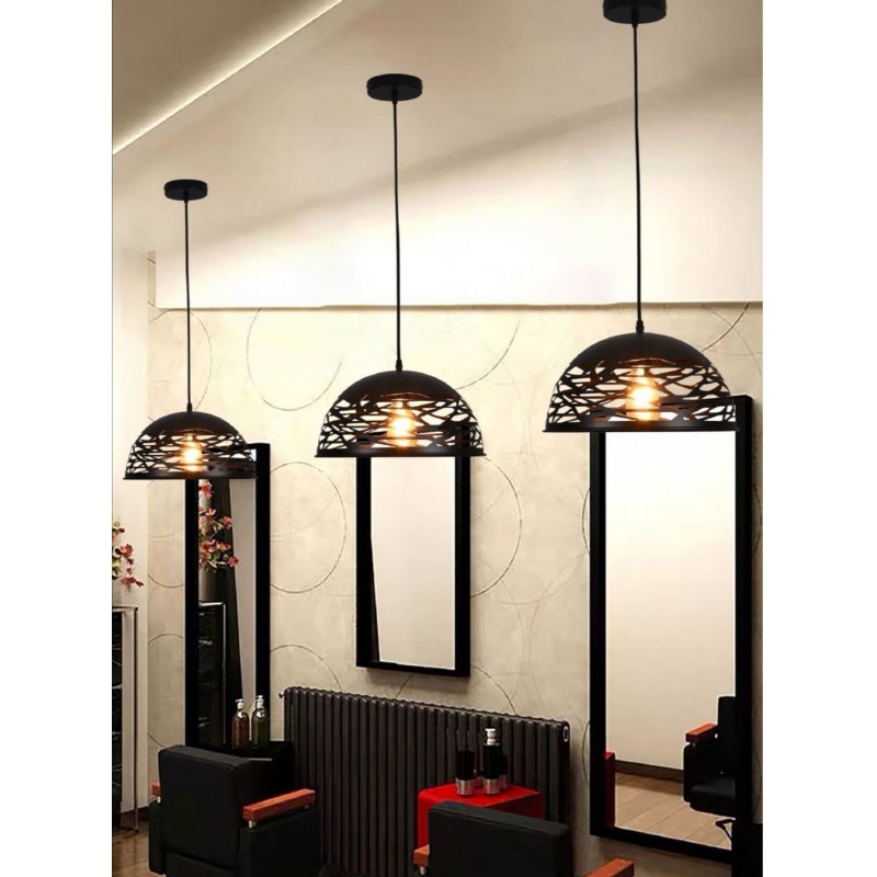 Lampadario a sospensione composto da un paralume traforato in metallo verniciato per un emissione di luce a 360°, dal design contemporaneo ideale per valorizzare ambienti di casa come cucina e corridoi. I suoi lineamenti semplici lo rendono un pendente adatto anche per spazi pubblici come negozi, ristoranti, pub e uffici. Portalampada per lampadine E27 (lampada non inclusa) Dimensioni: Lunghezza cavo totale 120 cm circa (regolabile in base alle proprie esigenze) Diametro base soffitto 12cm Diametro paralume 36 cm. Colore: Nero o bianco Alimentazione 230v L'offerta prevede l'acquisto di nr 1 lampadario, le foto dove vengono inllustrati più lampadari sono solo a scopo illustrativo
