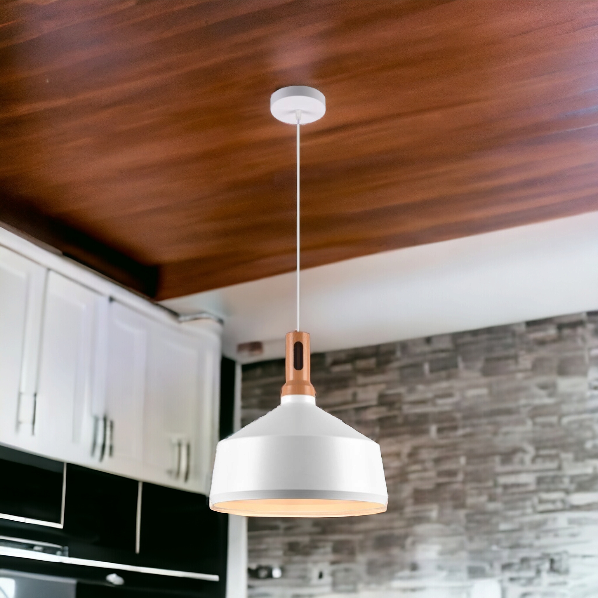 Eleva l'atmosfera della tua casa con il nostro lampadario sospeso moderno dal design industriale. Con un diffusore a forma di cupola che emette luce verso il basso, questo lampadario è perfetto per illuminare cucine, sale da pranzo e bar.  Realizzato in metallo di alta qualità, offre una durata e una resistenza eccezionali. Il lampadario è dotato di un portalampada con attacco E27, consentendo la scelta delle lampadine più adatte alle tue esigenze. Le dimensioni di Ø 350x220x1300 mm lo rendono adatto a diverse aree, dai tavoli alle isole della cucina. Leggero ma robusto, pesa solo 1,4 kg. Installare questo lampadario è un gioco da ragazzi e offre un tocco moderno e industriale a qualsiasi spazio. La sua versatilità lo rende ideale per l'uso in cucine, sale da pranzo, ristoranti e altro ancora. Rispetta gli standard di sicurezza e offre un'eccellente illuminazione per creare un'atmosfera accogliente. Aggiungi un tocco di stile e funzionalità alla tua casa con il nostro lampadario sospeso moderno. Perfetto per chi cerca un'illuminazione affidabile e di design