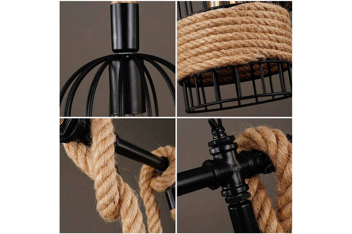 Dai un tocco di personalità ai tuoi spazi con questo lampadario dal design vintage industriale ideale per arredare i tuoi spazi e creare un effetto davvero speciale. Il lampadario è realizzato in lega di metallo e corda di canapa. perfetto per arredare casa con originalità ma anche tavernette, bar, pub, ristoranti Il suo stile vintage e i suoi materiali che richiamano la natura creano un ambiente confortevole e diffondono un fascino senza tempo, puoi personalizzare lo stile aggiungendo 5 lampadine con la forma che desideri (lampadine non incluse) Specifiche: Attacco E27 (lampadine non incluse) Wattaggio massimo per lampadina 60W Alimentazione Ac220v Dimensioni: 120x79 cm Alimentazione Ac220v Materiale canapa e metallo