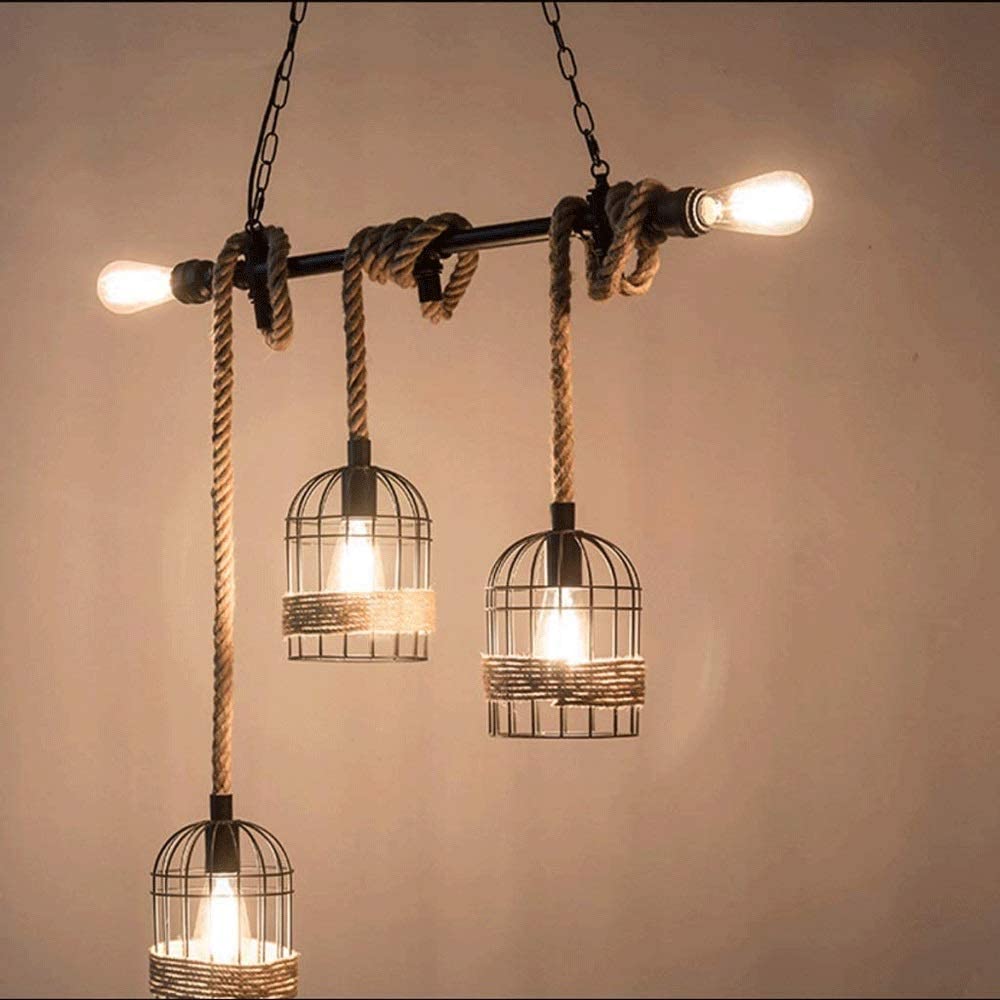 Dai un tocco di personalità ai tuoi spazi con questo lampadario dal design vintage industriale ideale per arredare i tuoi spazi e creare un effetto davvero speciale. Il lampadario è realizzato in lega di metallo e corda di canapa. perfetto per arredare casa con originalità ma anche tavernette, bar, pub, ristoranti Il suo stile vintage e i suoi materiali che richiamano la natura creano un ambiente confortevole e diffondono un fascino senza tempo, puoi personalizzare lo stile aggiungendo 5 lampadine con la forma che desideri (lampadine non incluse) Specifiche: Attacco E27 (lampadine non incluse) Wattaggio massimo per lampadina 60W Alimentazione Ac220v Dimensioni: 120x79 cm Alimentazione Ac220v Materiale canapa e metallo