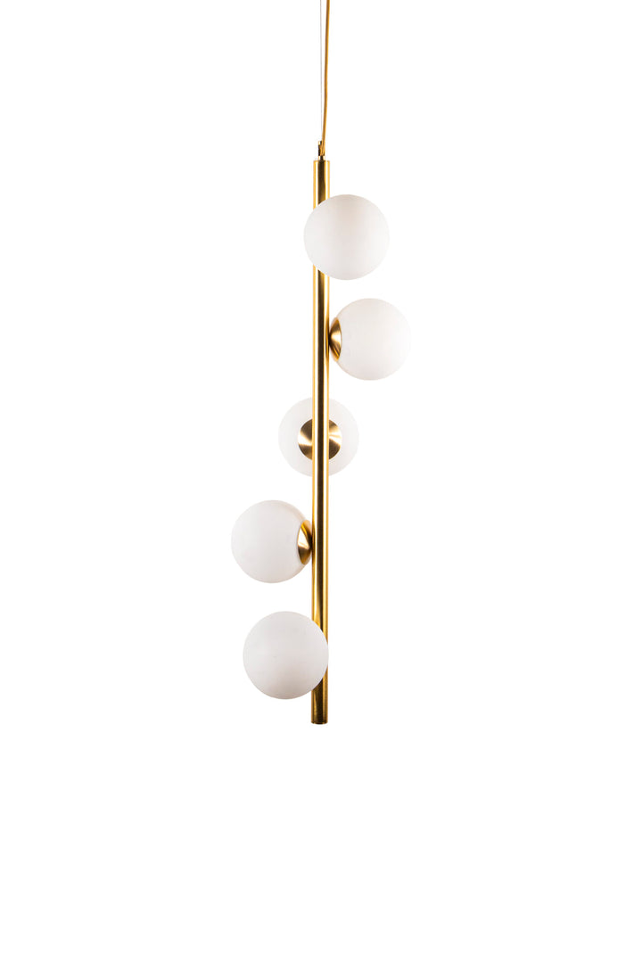 Immergiti nell'illuminazione sofisticata del Lampadario Verticale Moderno, un connubio perfetto tra design contemporaneo e funzionalità. Con la sua struttura in metallo dorato e le cinque sfere in vetro, questo lampadario emana una luminosità diffusa che trasforma qualsiasi ambiente in uno spazio accogliente e elegante. La sua installazione è un gioco da ragazzi, grazie alle istruzioni dettagliate incluse. Pensato per adattarsi sia agli interni domestici che agli spazi commerciali, aggiunge un tocco decorativo distintivo a ingressi, disimpegni e scale. Oltre alla sua bellezza estetica, il Lampadario Verticale Moderno garantisce anche efficienza e durata. L'attacco G9 offre una connessione sicura per diverse fonti luminose, mentre il suo design raffinato si integra perfettamente in ambienti moderni e classici. Le lampadine non sono incluse Non lasciarti sfuggire l'opportunità di elevare il tuo spazio con questo pezzo iconico. Una scelta che unisce stile, funzionalità e qualità in un unico prodotto.