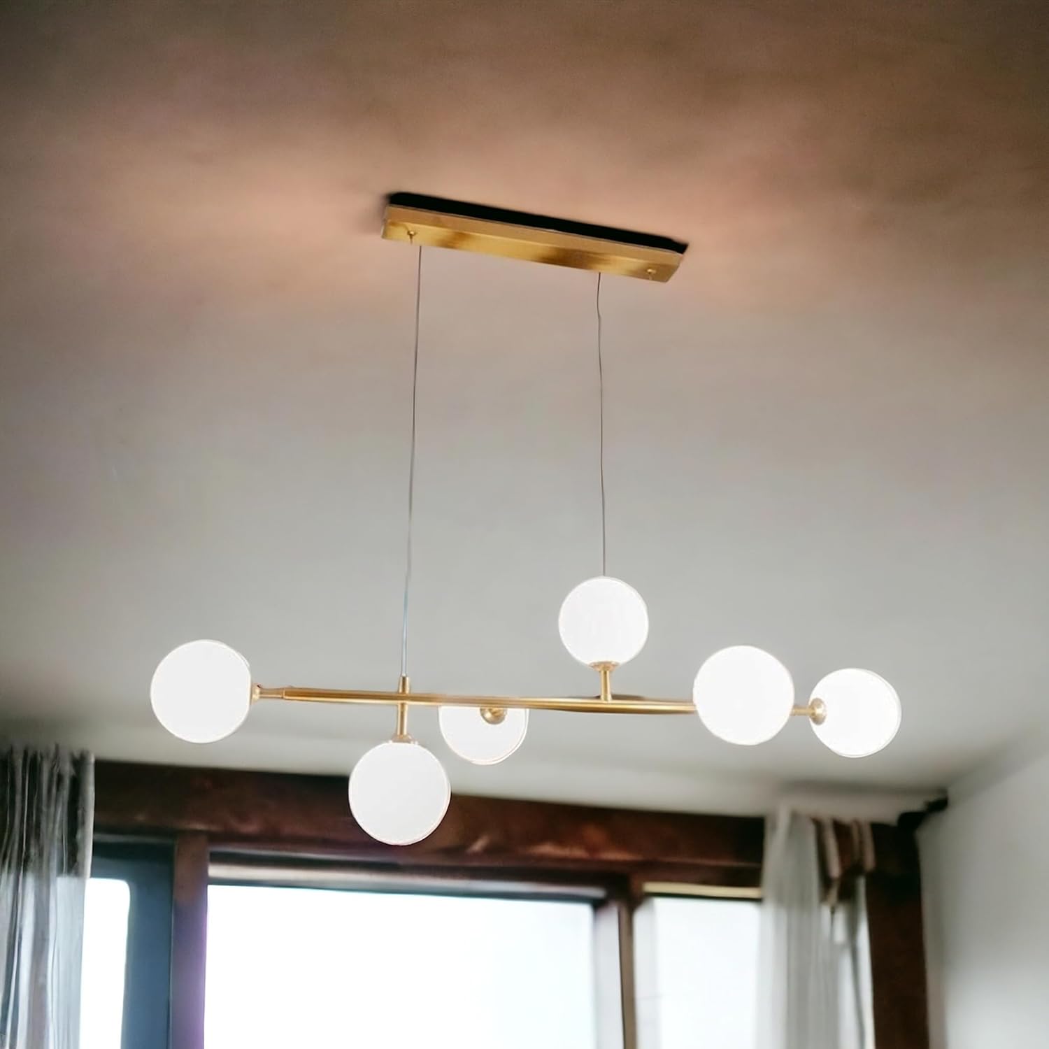 • Materiali di Qualità: Con struttura in metallo dorato e sfere in vetro, questo lampadario garantisce durata e un tocco elegante.