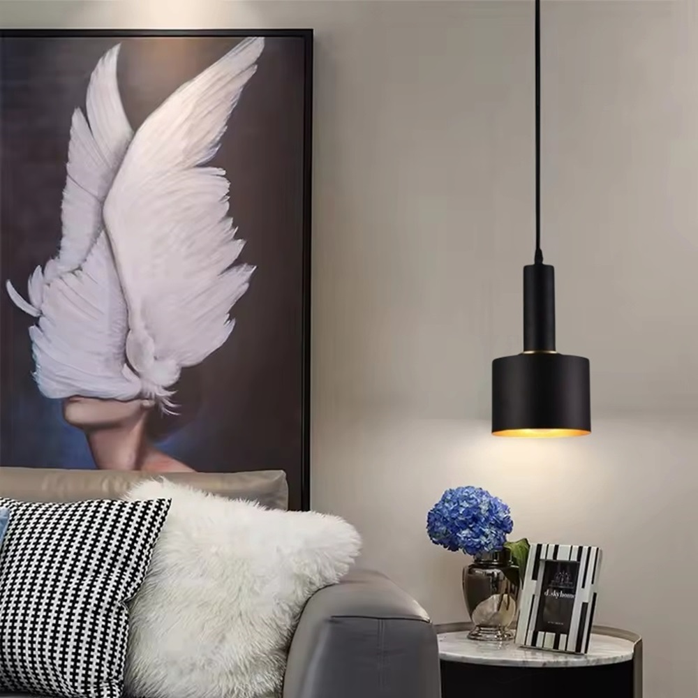 Aggiungi un tocco di raffinatezza e robustezza ai tuoi spazi con il nostro lampadario pendente in metallo nero dal design minimalista. L'interno dorato crea un contrasto elegante, diffondendo una luce calda e accogliente grazie al diffusore integrato. Con una lunghezza regolabile fino a 120 cm, questo lampadario si adatta perfettamente a ogni ambiente. Il paralume compatto, con un diametro di 13 cm e un'altezza di 22 cm, è ideale per isole da cucina, tavoli da pranzo, snack bar, camere da letto e soggiorni.