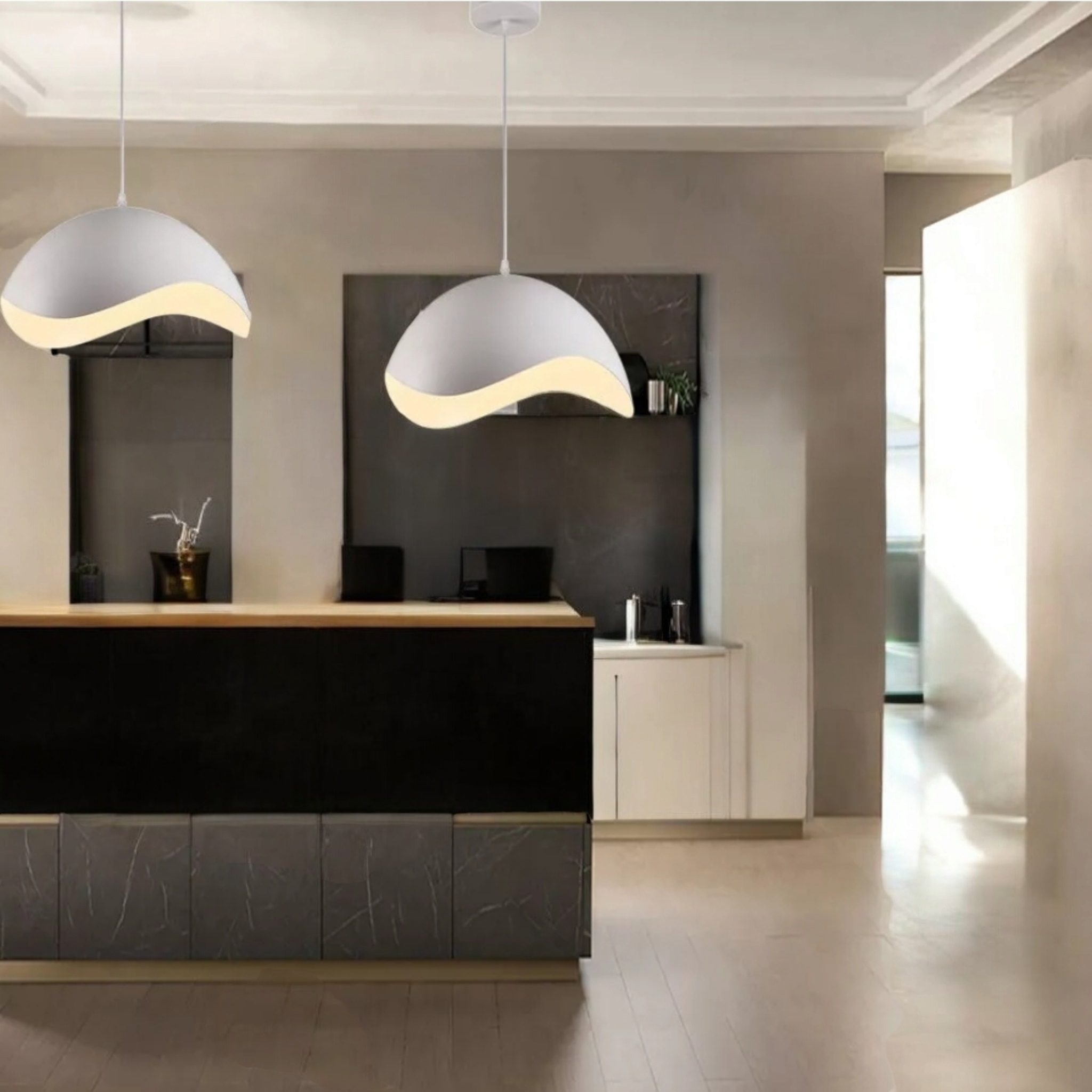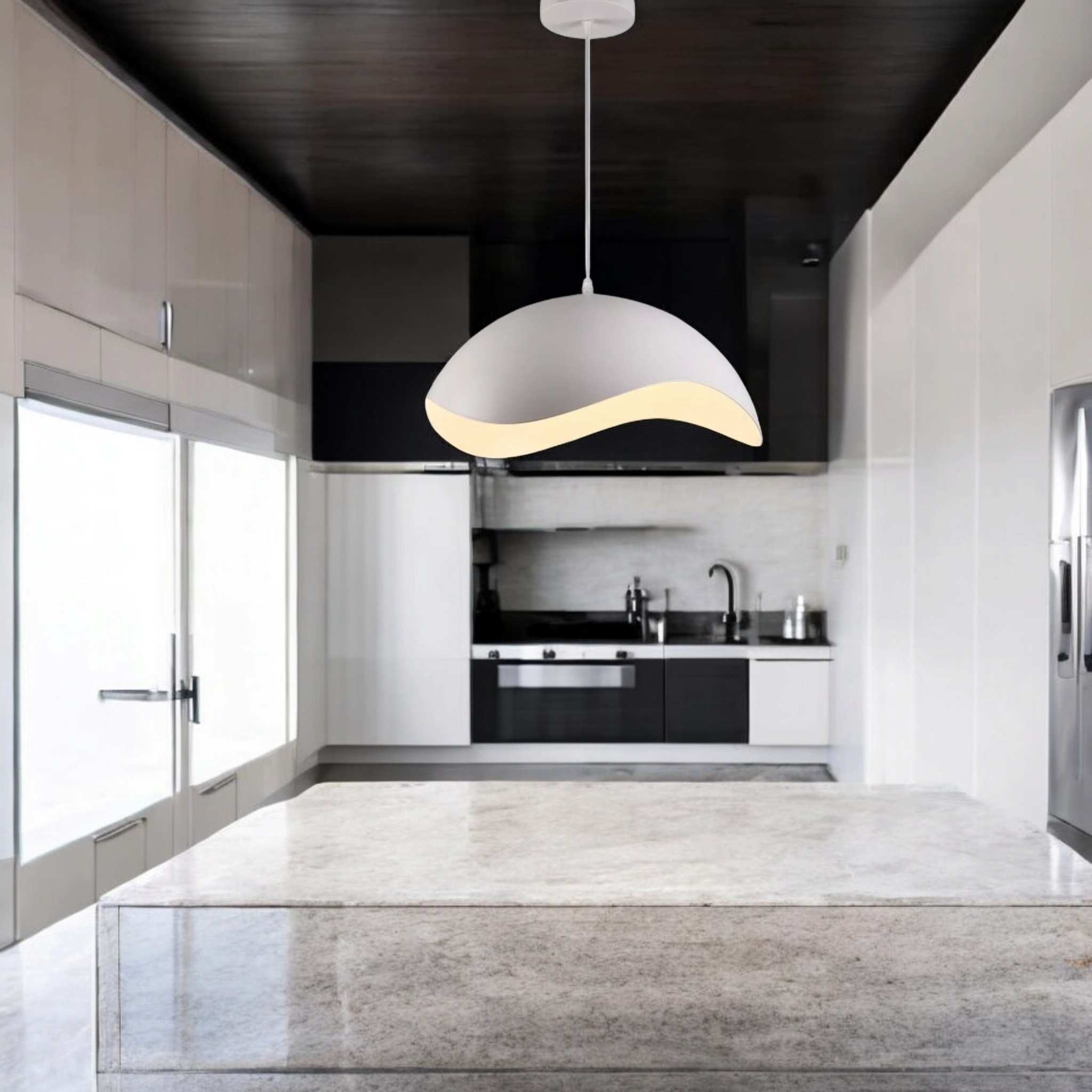 Illuminazione Diffusa e Accogliente – La curvatura interna riflette la luce in modo uniforme, creando un'atmosfera calda e invitante in cucina, soggiorno o camera da letto.